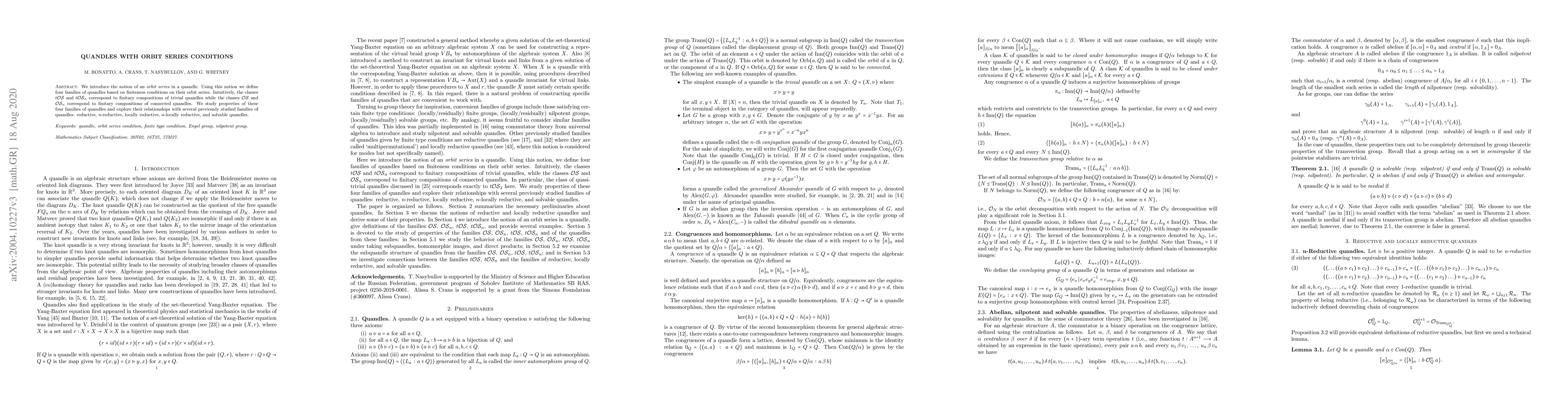 The paper introduces the concept of orbit series in quandles and defines four families based on orbit series finiteness conditions. It examines the properties and relationships of these new families with previously studied types of quandles.