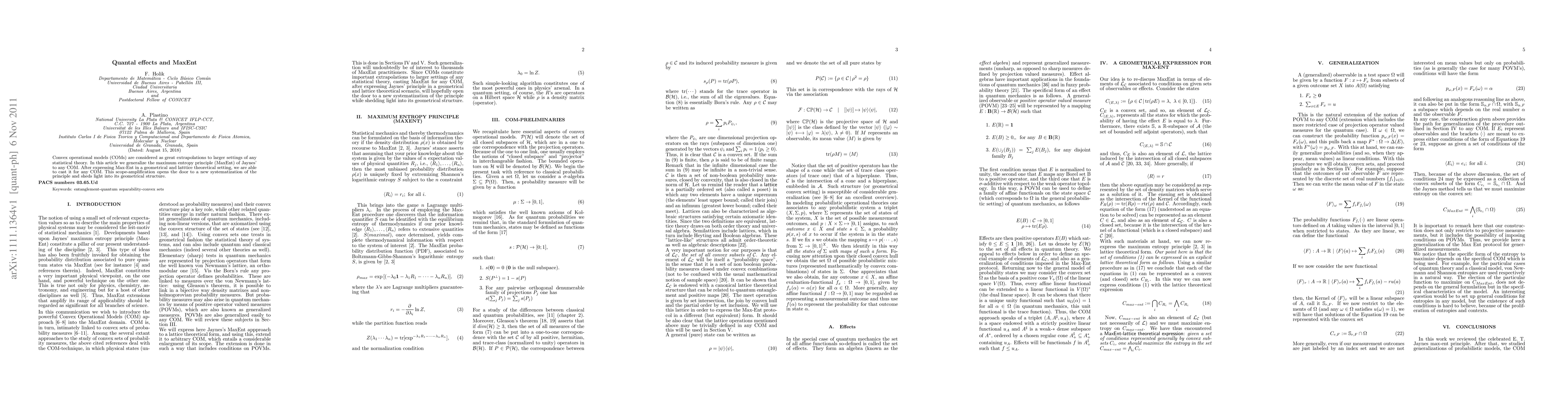Convex operational models (COMs) are considered as great extrapolations to larger settings of any statistical theory. In this article we generalize the maximum entropy principle (MaxEnt) of Jaynes' to any COM. After expressing Max-Ent in a geometrical and latttice theoretical setting, we are able to cast it for any COM. This scope-amplification opens the door to a new systematization of the principle and sheds light into its geometrical structure.