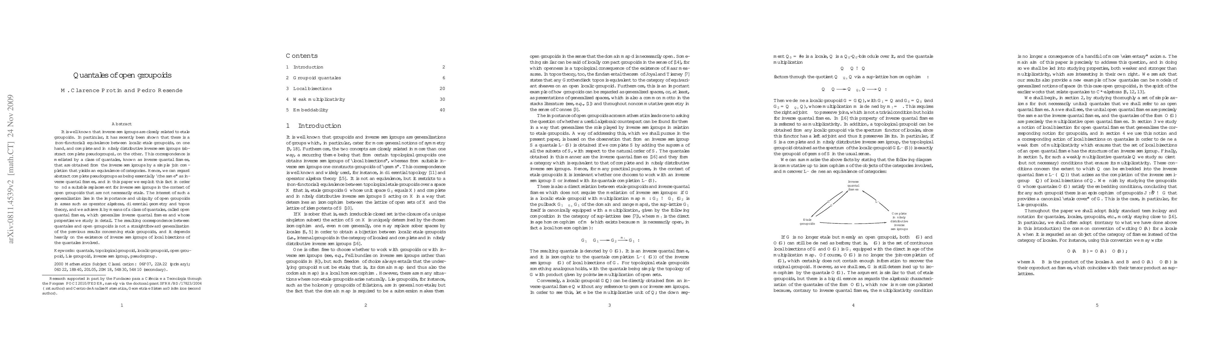It is well known that inverse semigroups are closely related to \'etale groupoids. In particular, it has recently been shown that there is a (non-functorial) equivalence between localic \'etale groupoids, on one hand, and complete and infinitely distributive inverse semigroups (abstract complete pseudogroups), on the other. This correspondence is mediated by a class of quantales, known as inverse quantal frames, that are obtained from the inverse semigroups by a simple join completion that yields an equivalence of categories. Hence, we can regard abstract complete pseudogroups as being essentially ``the same'' as inverse quantal frames, and in this paper we exploit this fact in order to find a suitable replacement for inverse semigroups in the context of open groupoids that are not necessarily \'etale. The interest of such a generalization lies in the importance and ubiquity of open groupoids in areas such as operator algebras, differential geometry and topos theory, and we achieve it by means of a class of quantales, called open quantal frames, which generalize inverse quantal frames and whose properties we study in detail. The resulting correspondence between quantales and open groupoids is not a straightforward generalization of the previous results concerning \'etale groupoids, and it depends heavily on the existence of inverse semigroups of local bisections of the quantales involved.