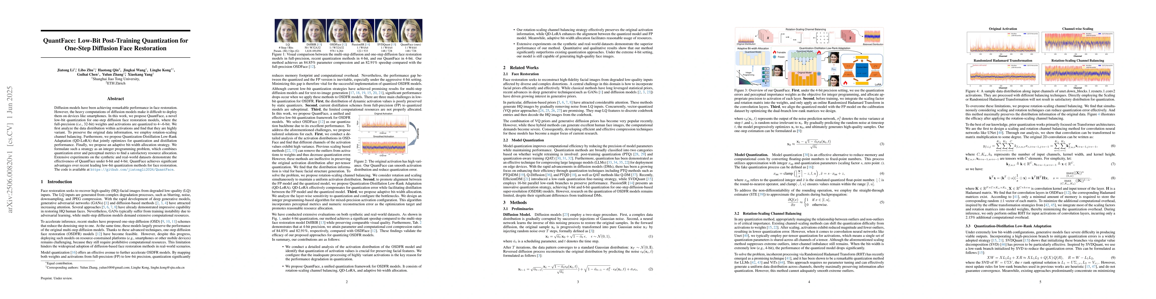 A new method called QuantFace reduces computational requirements for face restoration models, achieving significant performance advantages on low-bit devices like smartphones.