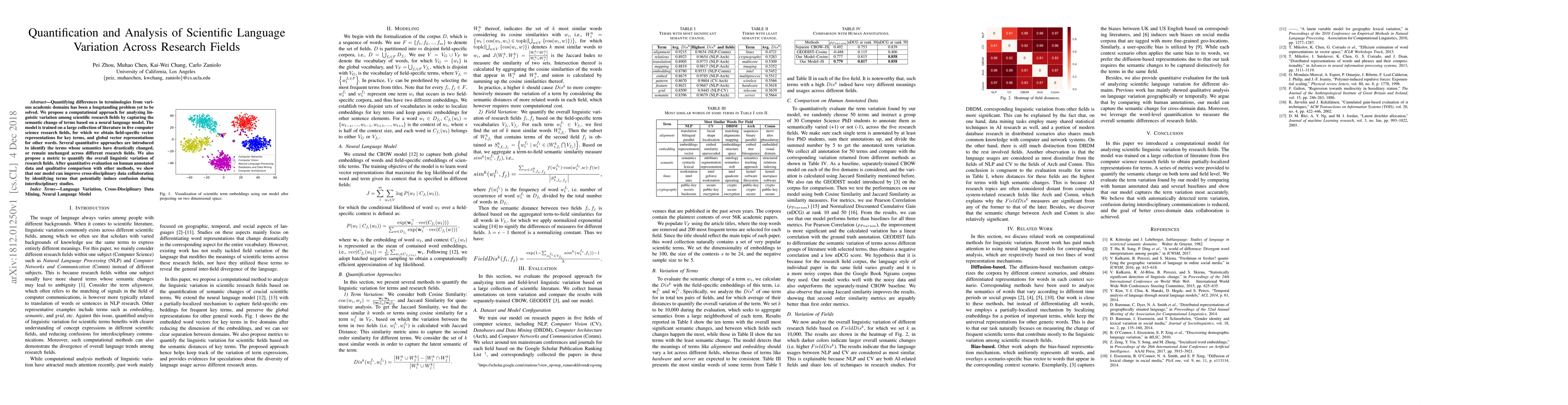 This paper proposes a computational method to analyze linguistic variation across different scientific research fields using a neural language model. The model identifies semantic changes in key terms across five computer science fields and quantifies overall linguistic variation, aiming to improve cross-disciplinary data collaboration.