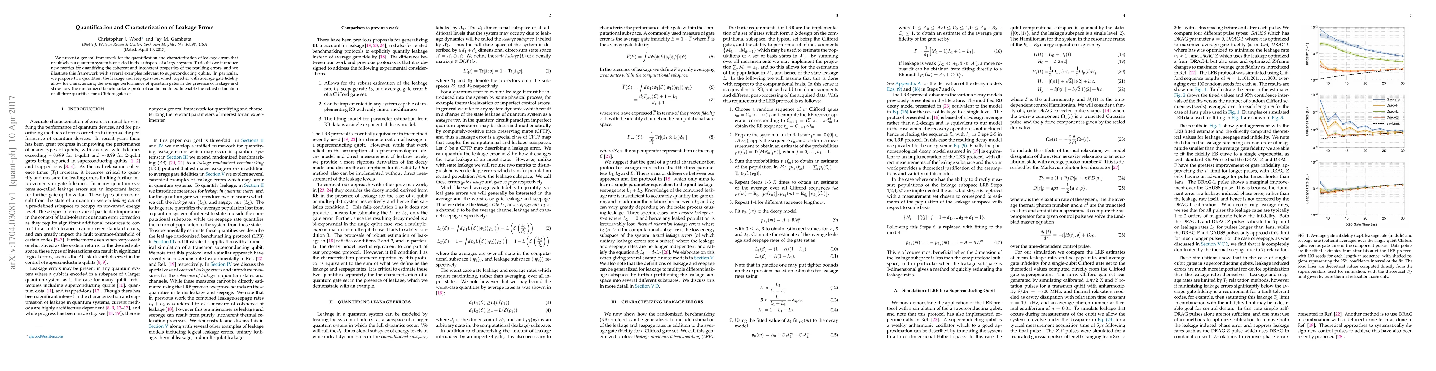 This paper introduces a framework for quantifying and characterizing leakage errors in quantum systems, proposing new metrics for coherent and incoherent error properties. It introduces leakage and seepage rates alongside average gate fidelity to assess quantum gate performance, and modifies randomized benchmarking for robust estimation of these metrics in superconducting qubits.
