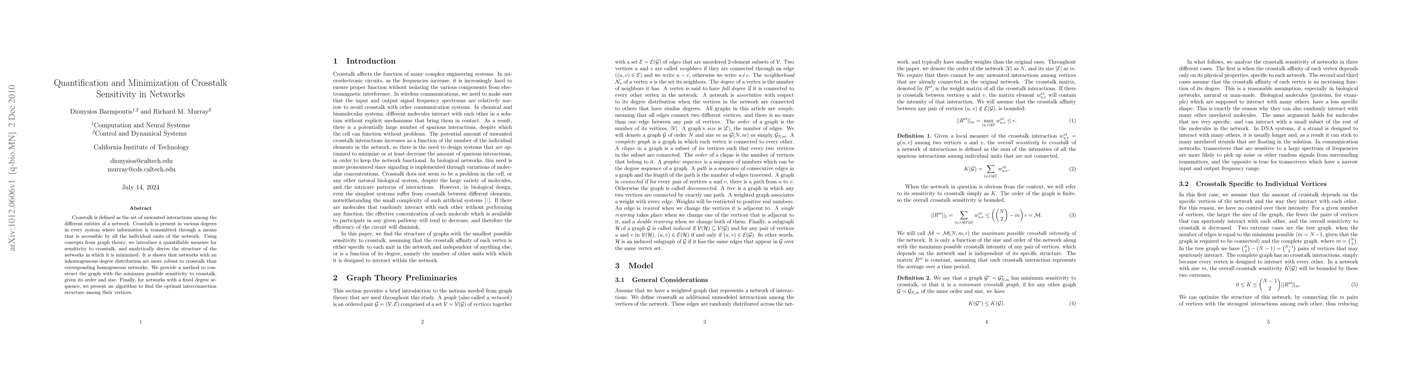 Crosstalk is defined as the set of unwanted interactions among the different entities of a network. Crosstalk is present in various degrees in every system where information is transmitted through a means that is accessible by all the individual units of the network. Using concepts from graph theory, we introduce a quantifiable measure for sensitivity to crosstalk, and analytically derive the structure of the networks in which it is minimized. It is shown that networks with an inhomogeneous degree distribution are more robust to crosstalk than corresponding homogeneous networks. We provide a method to construct the graph with the minimum possible sensitivity to crosstalk, given its order and size. Finally, for networks with a fixed degree sequence, we present an algorithm to find the optimal interconnection structure among their vertices.