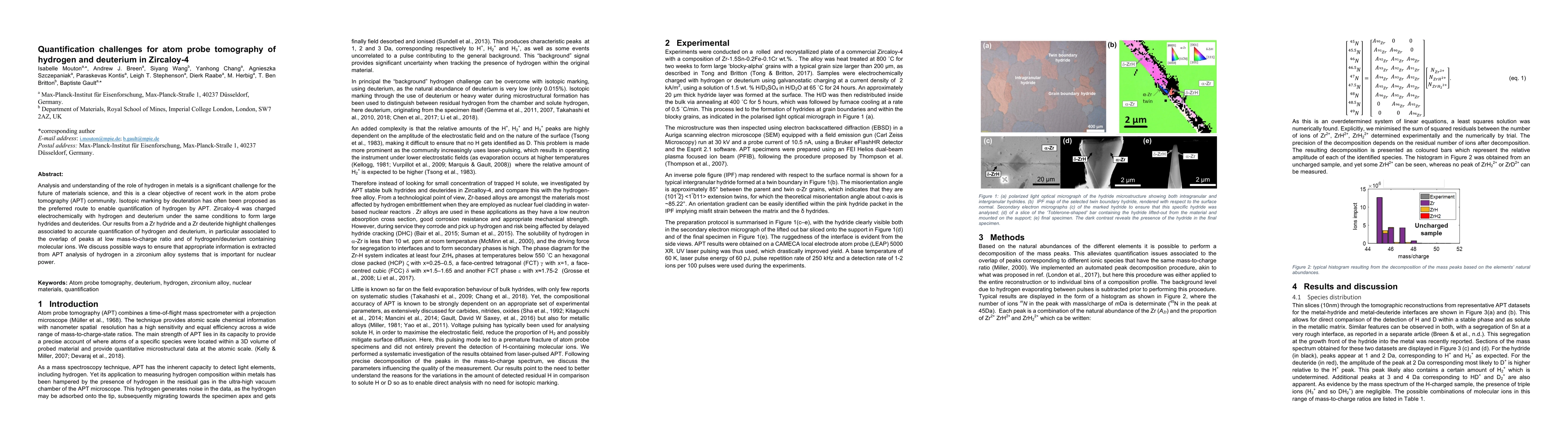 Researchers studied hydrogen in Zircaloy-4 using atom probe tomography and found challenges in accurately quantifying it due to peak overlap with deuterium-containing ions. The study aims to improve understanding of hydrogen's role in nuclear power materials.
