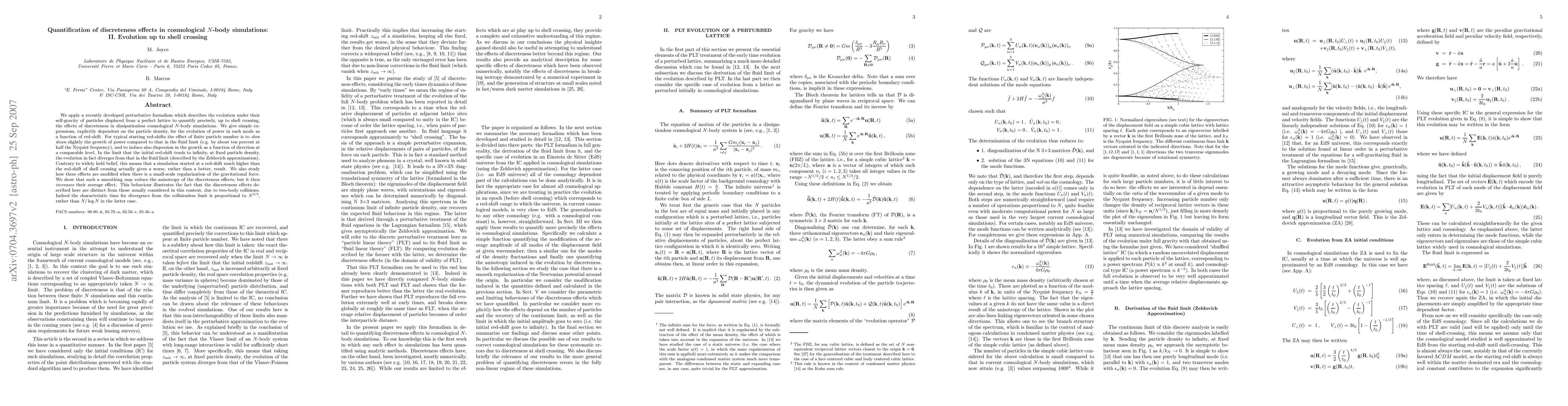 This study utilizes a perturbative formalism to quantify the impact of discreteness in cosmological N-body simulations up to shell crossing, revealing that finite particle numbers slow down power growth and introduce directional dispersion. Contrary to conventional wisdom, starting simulations at higher redshifts worsens results; moreover, small-scale regularization of gravitational force can reduce anisotropy but amplify overall discreteness effects.