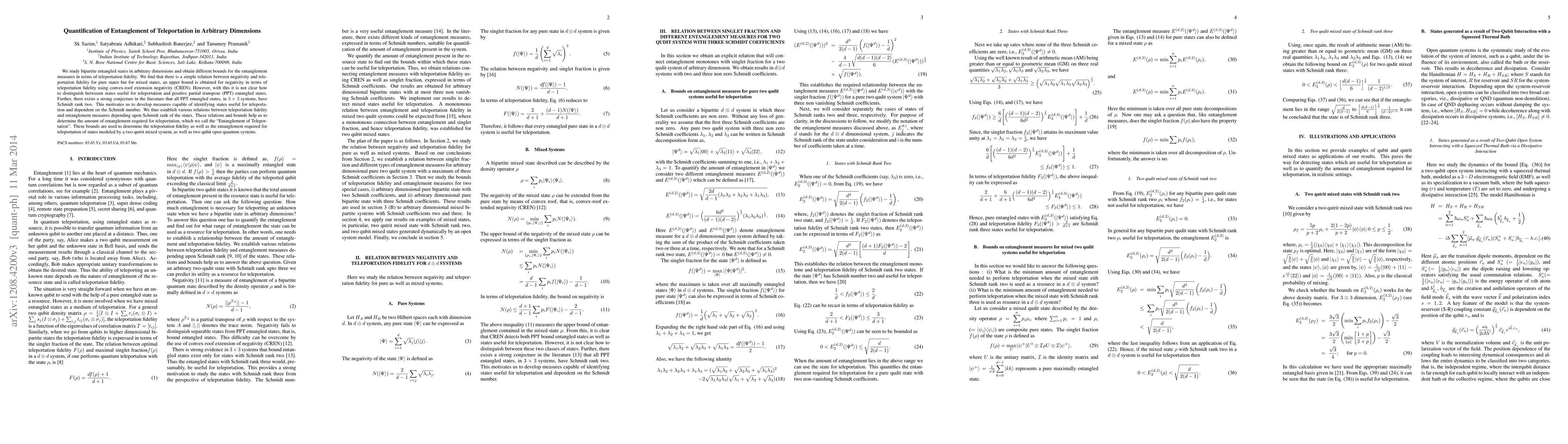 We study bipartite entangled states in arbitrary dimensions and obtain different bounds for the entanglement measures in terms of teleportation fidelity. We find that there is a simple relation between negativity and teleportation fidelity for pure states but for mixed states, an upper bound is obtained for negativity in terms of teleportation fidelity using convex-roof extension negativity (CREN). However, with this it is not clear how to distinguish betweeen states useful for teleportation and positive partial transpose (PPT) entangled states. Further, there exists a strong conjecture in the literature that all PPT entangled states, in 3 \times 3 systems, have Schmidt rank two. This motivates us to develop measures capable of identifying states useful for teleportation and dependent on the Schmidt number. We thus establish various relations between teleportation fidelity and entanglement measures depending upon Schmidt rank of the states. These relations and bounds help us to determine the amount of entanglement required for teleportation, which we call the ``Entanglement of Teleportation''. These bounds are used to determine the teleportation fidelity as well as the entanglement required for teleportation of states modeled by a two qutrit mixed system, as well as two qubit open quantum systems.