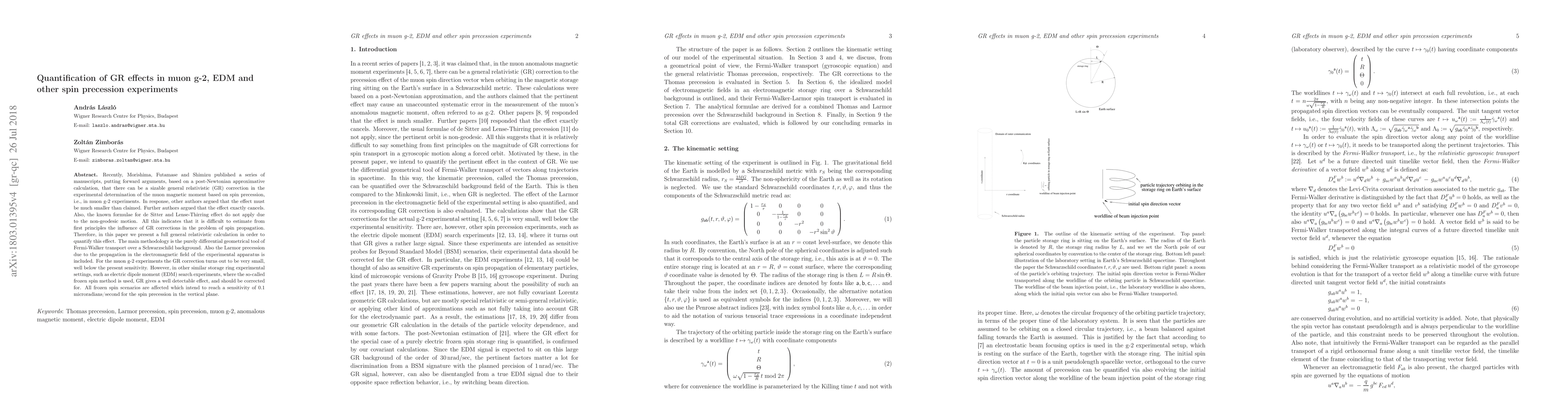 Researchers quantify general relativistic effects in muon g-2, EDM experiments, finding small corrections that can be neglected for current sensitivity but significant impacts on future experiments aiming to detect spin precession at 0.1 microradians/second.