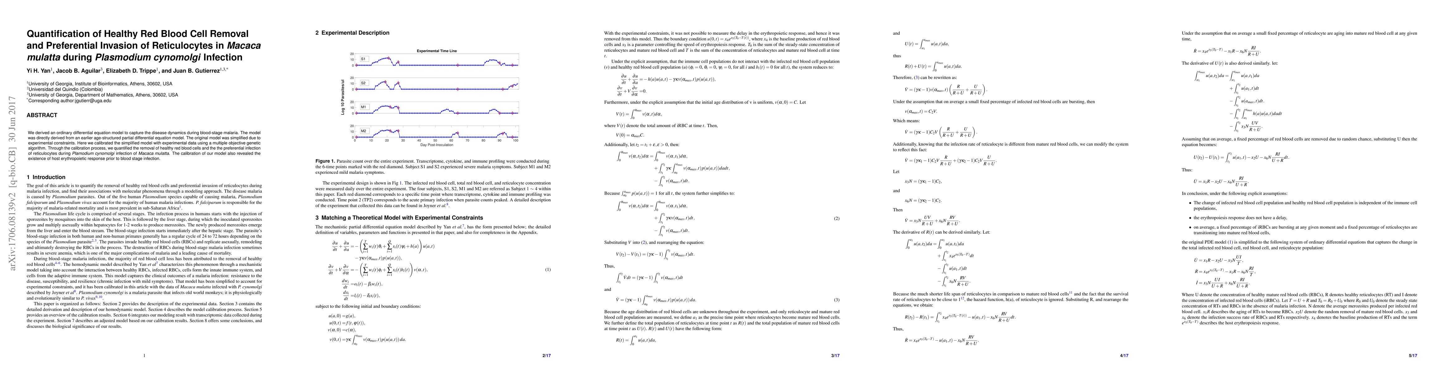 This study developed an ordinary differential equation model to analyze the dynamics of Plasmodium cynomolgi infection in Macaca mulatta, quantifying the removal of healthy red blood cells and the preferential invasion of reticulocytes. The model was calibrated using experimental data, revealing a host erythropoietic response before blood stage infection.