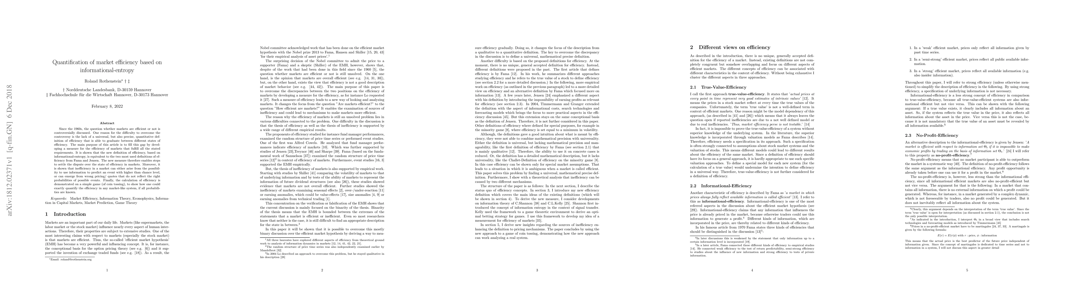 This paper introduces a measure of market efficiency based on informational-entropy, showing it is equivalent to two existing definitions, enabling the quantification of market efficiency and identifying its causes, including information misuse or incorrect pricing.
