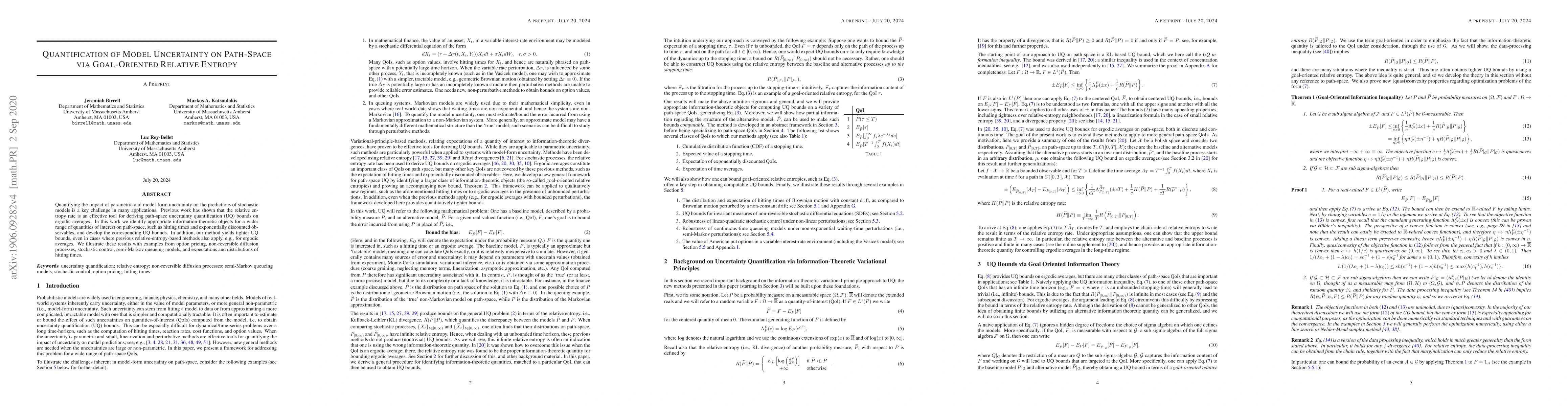 This paper develops a goal-oriented relative entropy method for quantifying model uncertainty on path-space, providing tighter uncertainty bounds for a wider range of quantities, including hitting times and discounted observables, compared to previous methods. Examples from various applications demonstrate the effectiveness of the proposed approach.