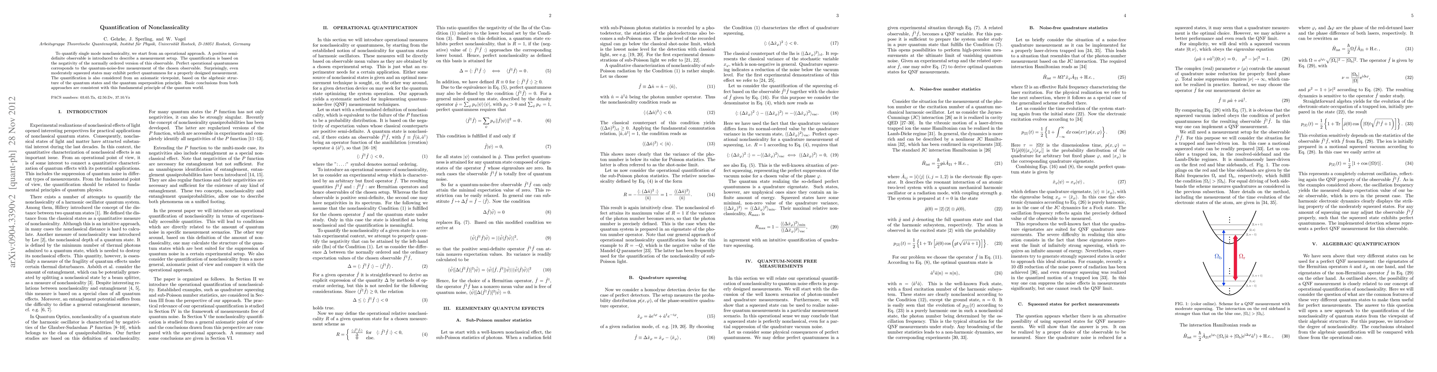 To quantify single mode nonclassicality, we start from an operational approach. A positive semi-definite observable is introduced to describe a measurement setup. The quantification is based on the negativity of the normally ordered version of this observable. Perfect operational quantumness corresponds to the quantum-noise-free measurement of the chosen observable. Surprisingly, even moderately squeezed states may exhibit perfect quantumness for a properly designed measurement. The quantification is also considered from an axiomatic viewpoint, based on the algebraic structure of the quantum states and the quantum superposition principle. Basic conclusions from both approaches are consistent with this fundamental principle of the quantum world.