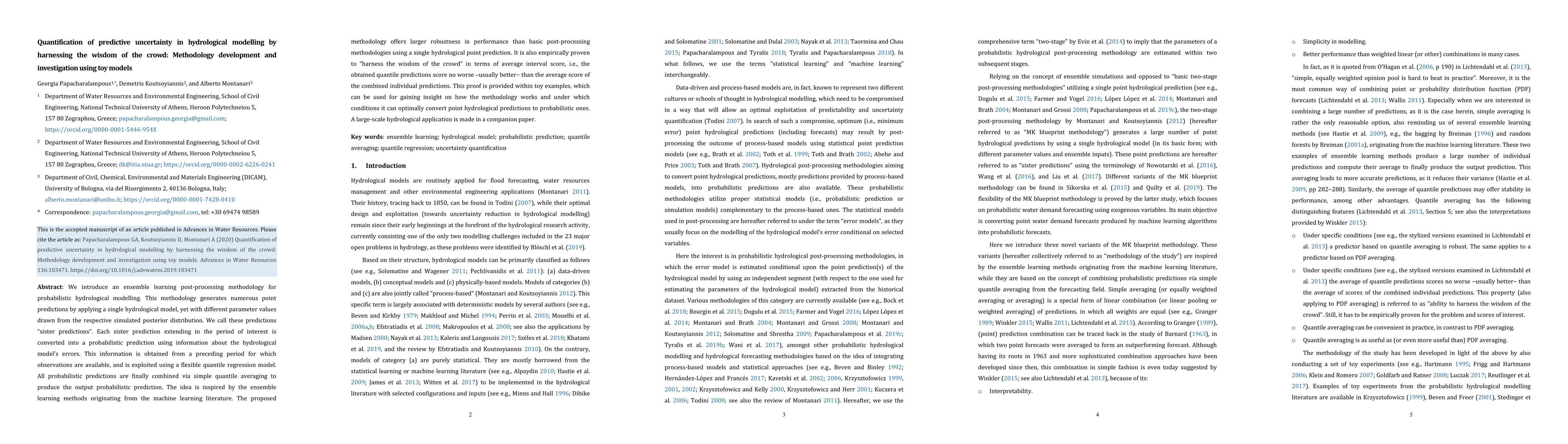 This paper introduces an ensemble learning post-processing methodology to improve predictive uncertainty in hydrological modeling, achieving better performance than traditional methods through crowd-sourced predictions.
