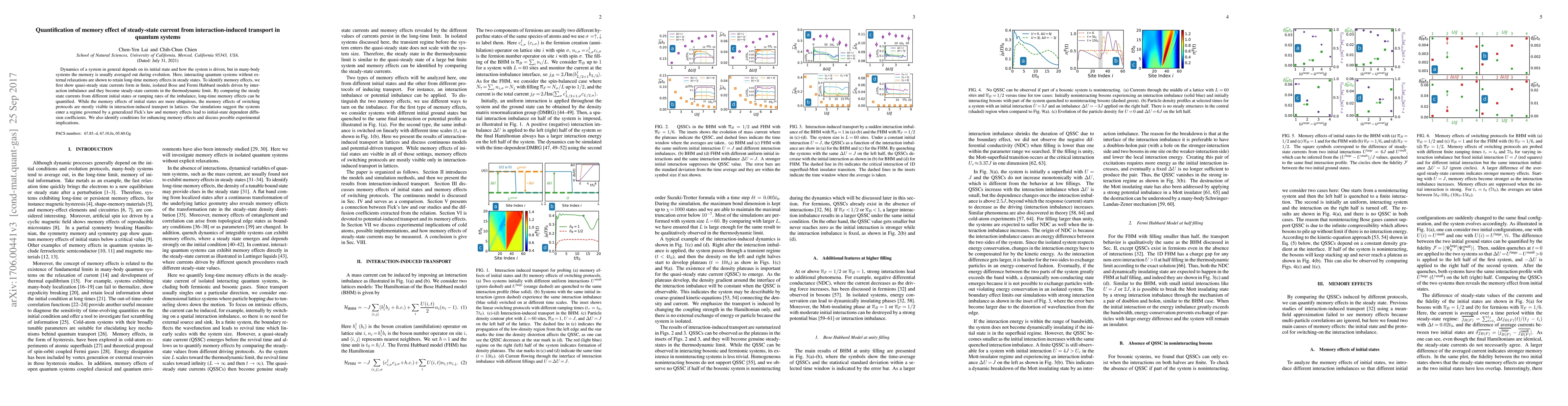 This paper investigates memory effects in interacting quantum systems driven by interaction imbalance, demonstrating that such systems retain long-term memory in their steady states. The study reveals that quasi-steady state currents in finite models evolve into steady-state currents in the thermodynamic limit, with memory effects quantified by comparing currents from different initial states or ramping rates.