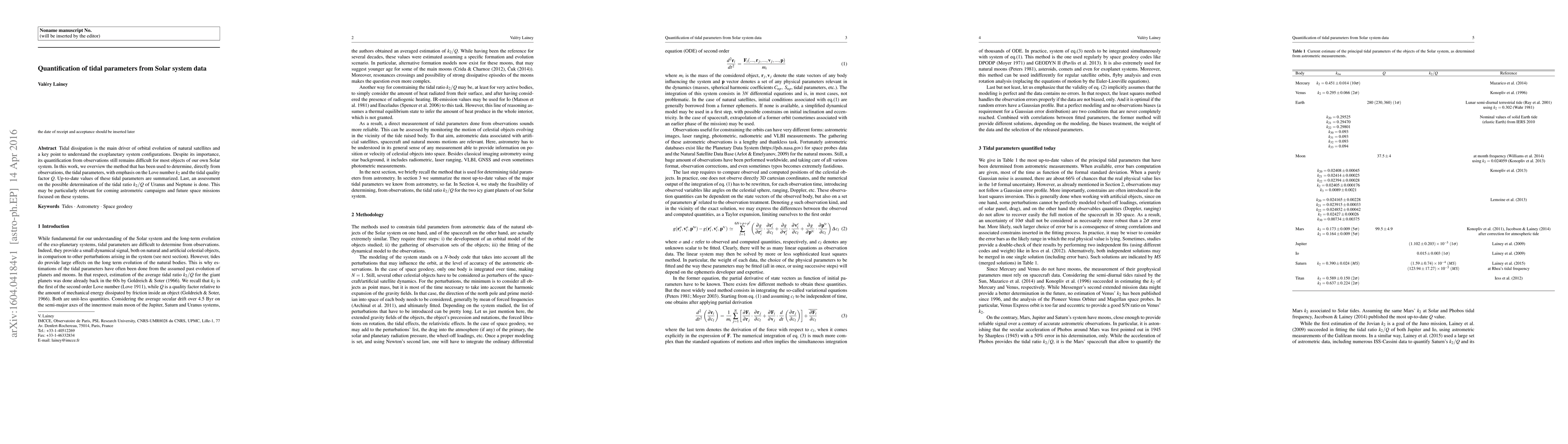 Researchers developed a method to quantify tidal parameters from Solar system data, providing updated values for key parameters like Love number k2 and tidal quality factor Q, which is crucial for understanding exoplanetary systems.