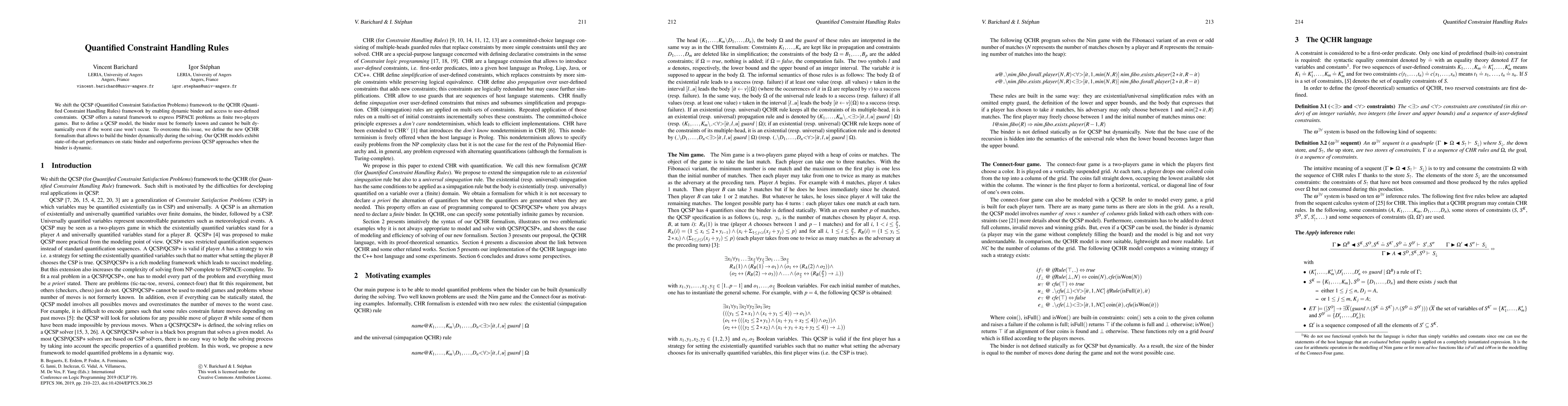 The introduction of the QCHR formalism, which extends CHR with quantification, enabling dynamic binder construction and improving the solving of quantified constraint satisfaction problems.