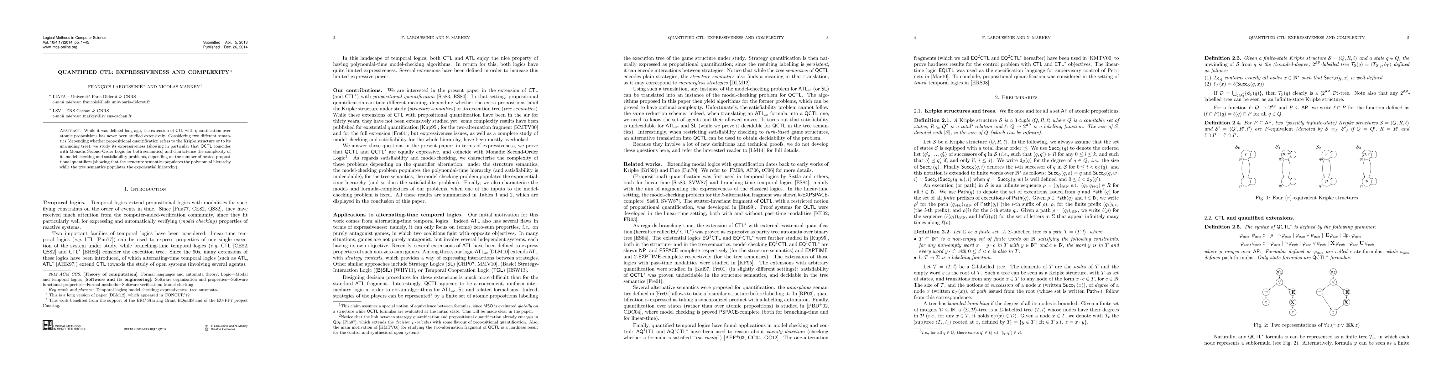 This research explores Quantified CTL (QCTL), extending Computation Tree Logic (CTL) with quantification over atomic propositions. It reveals QCTL's equivalence to Monadic Second-Order Logic under two different semantics, and characterizes the complexity of model-checking and satisfiability problems, placing them in the polynomial hierarchy for structure semantics and the exponential hierarchy for tree semantics.