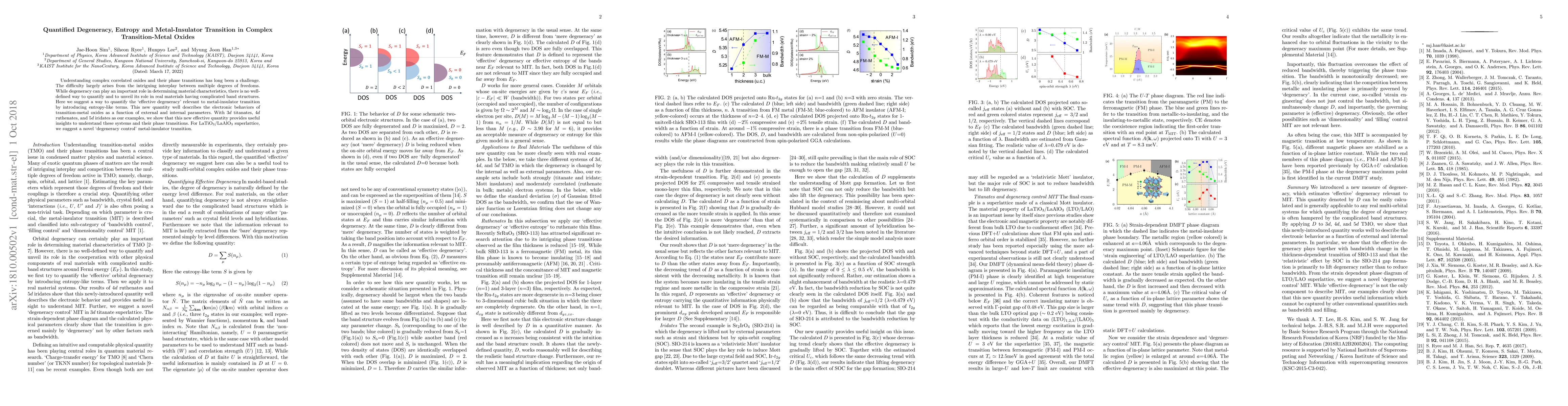The introduction of an entropy-like term to quantify 'effective degeneracy' relevant to metal-insulator transition, providing a new perspective on understanding complex correlated oxides and their phase transitions.