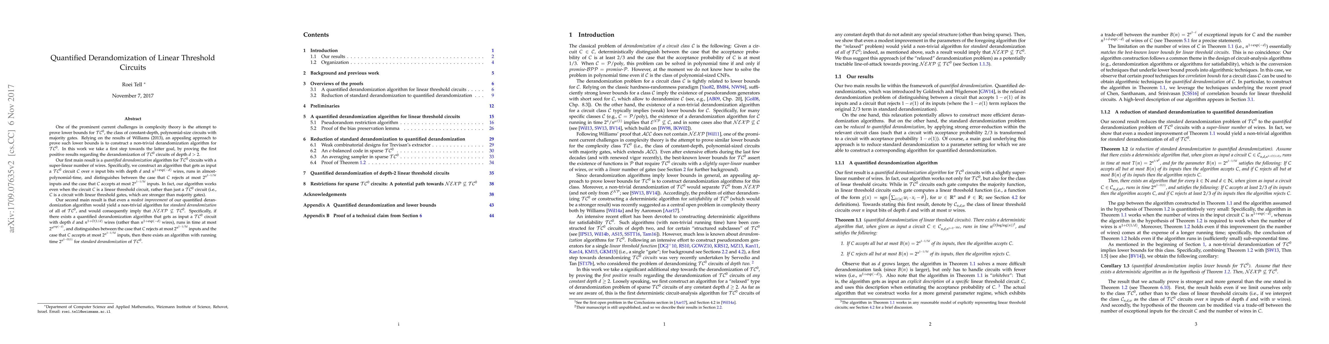 This paper presents a quantified derandomization algorithm for $TC^0$ circuits of depth $d>2$ with a super-linear number of wires, distinguishing between circuits with minimal rejection or acceptance rates. It suggests that a modest improvement in this algorithm could lead to a significant derandomization of $TC^0$ and imply $NEXP\not\subseteq TC^0$.