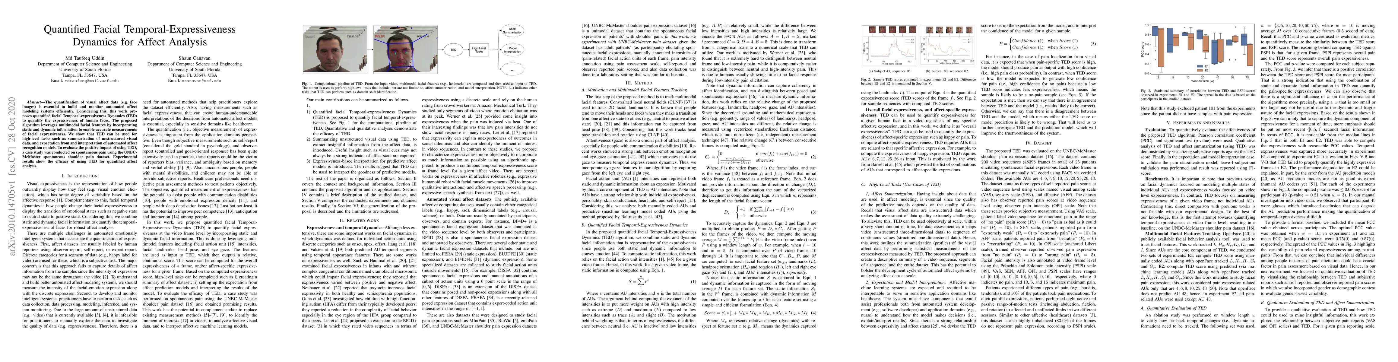 This paper proposes a method called Temporal-expressiveness Dynamics (TED) to quantify facial expressiveness using multimodal facial features. The approach is shown to improve affect analysis, demonstrated through its application in analyzing spontaneous pain in the UNBC-McMaster shoulder pain dataset, leading to better summarization and interpretation of visual affect data.