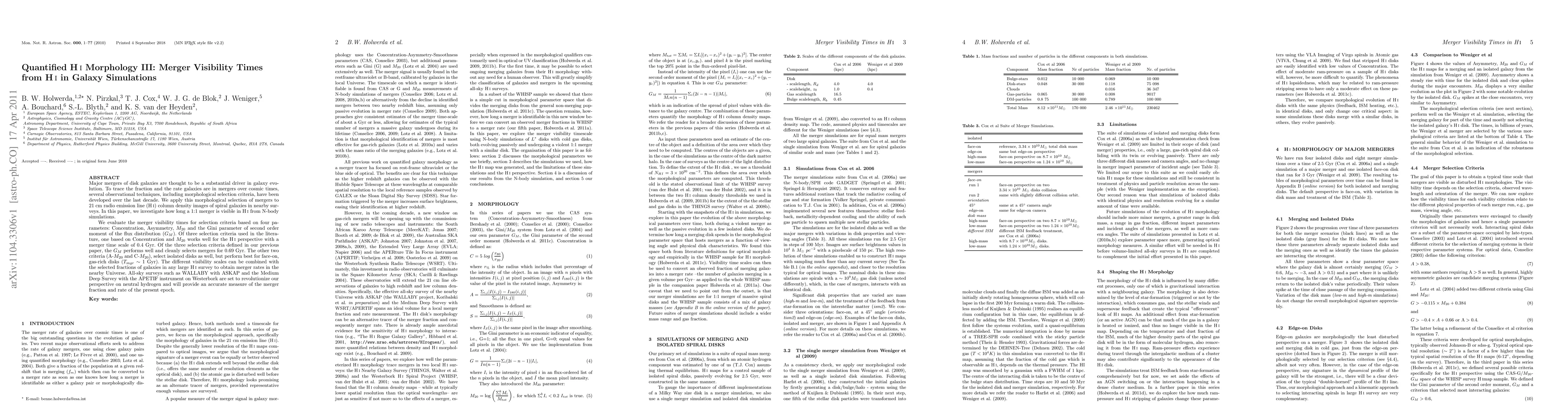 This paper investigates the visibility times of 1:1 galaxy mergers in HI column density images from N-body simulations, finding that the GM parameter selection criterion effectively identifies mergers for 0.69 Gyr. The study combines these visibility scales with HI survey data to estimate merger rates in the nearby Universe, highlighting the potential of upcoming all-sky HI surveys.