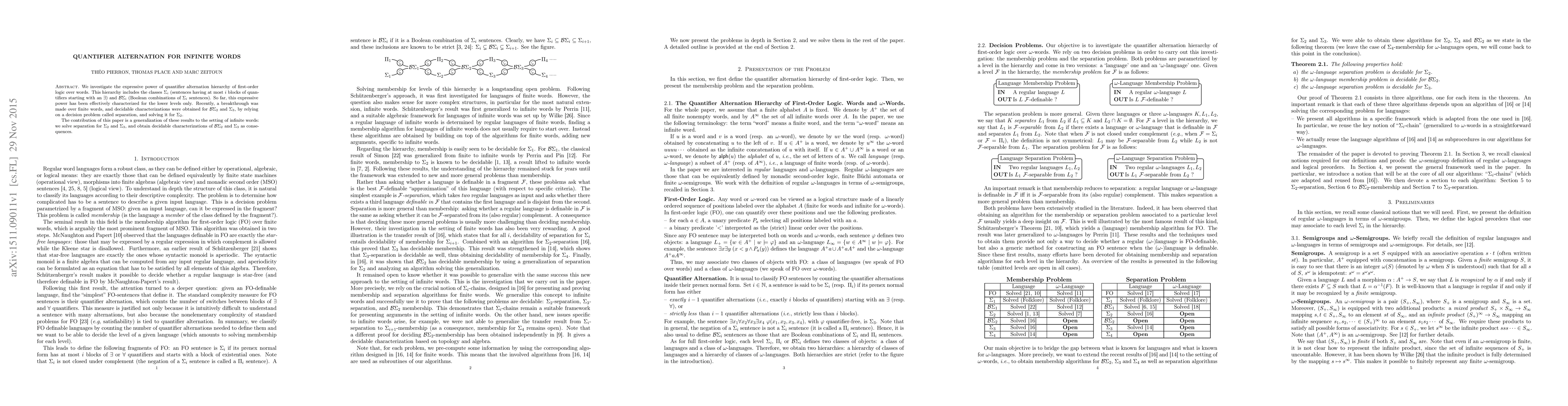 We investigate the expressive power of quantifier alternation hierarchy of first-order logic over words. This hierarchy includes the classes ${\Sigma}_i$ (sentences having at most $i$ blocks of quantifiers starting with an $\exists$) and $\mathcal{B}{\Sigma}_i$ (Boolean combinations of ${\Sigma}_i$ sentences). So far, this expressive power has been effectively characterized for the lower levels only. Recently, a breakthrough was made over finite words, and decidable characterizations were obtained for $\mathcal{B}{\Sigma}_2$ and ${\Sigma}_3$, by relying on a decision problem called separation, and solving it for ${\Sigma}_2$. The contribution of this paper is a generalization of these results to the setting of infinite words: we solve separation for ${\Sigma}_2$ and ${\Sigma}_3$, and obtain decidable characterizations of $\mathcal{B}{\Sigma}_2$ and ${\Sigma}_3$ as consequences.