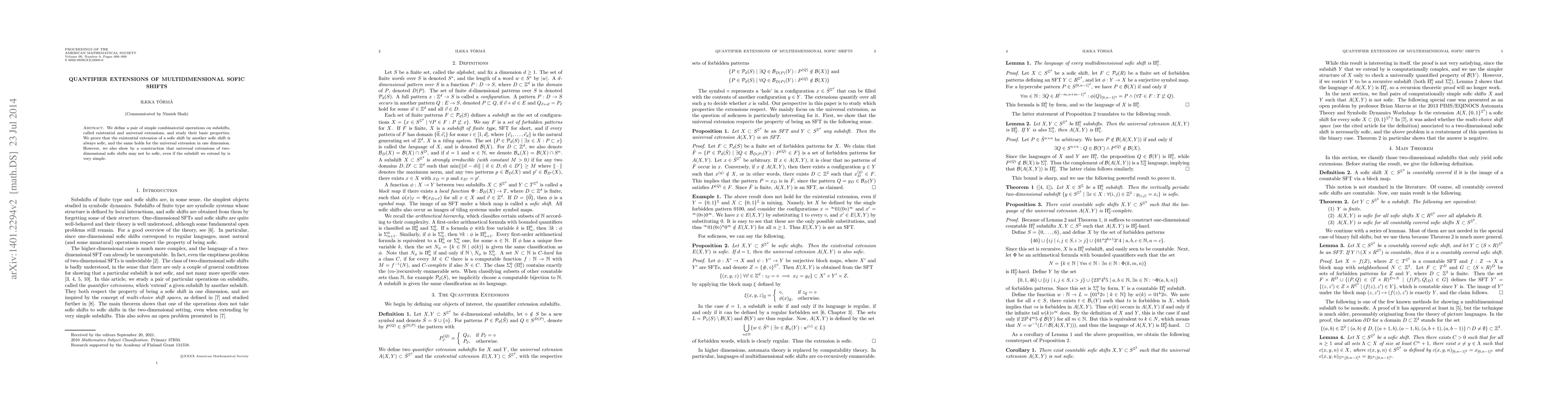 This paper introduces existential and universal extensions of multidimensional sofic shifts, proving that existential extensions always result in sofic shifts, while universal extensions in one dimension are sofic, but two-dimensional universal extensions may fail to be sofic despite simple extensions.