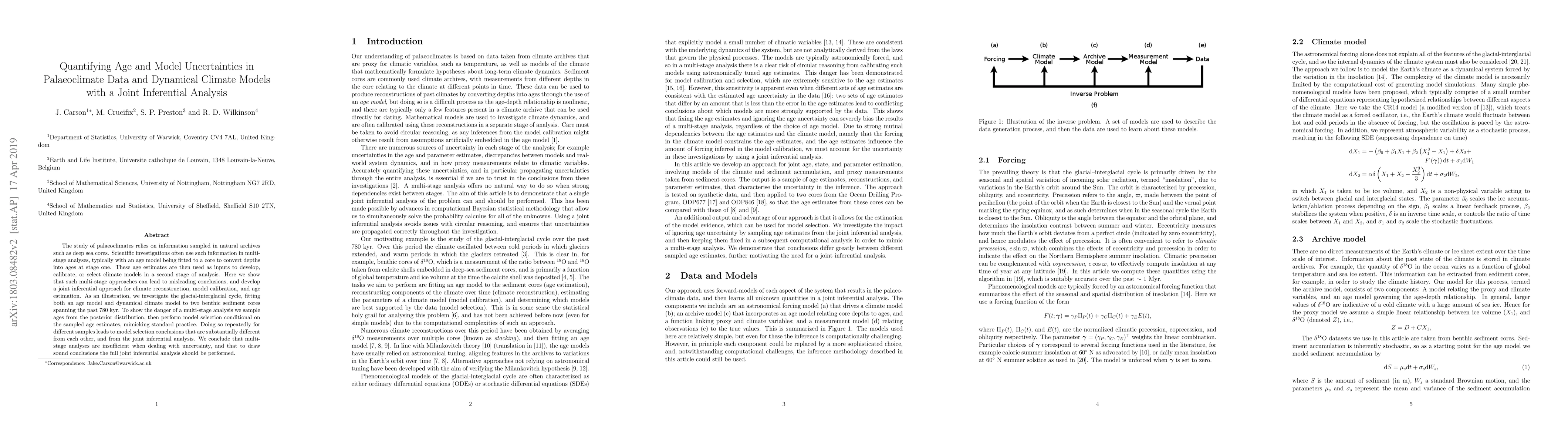 This paper develops a joint inferential approach to quantify uncertainties in paleoclimate data and climate models, showing that traditional multi-stage analyses can lead to misleading conclusions. The study finds that a complete joint inferential analysis, which accounts for all uncertainties, provides more reliable scientific conclusions than separate stage analyses.