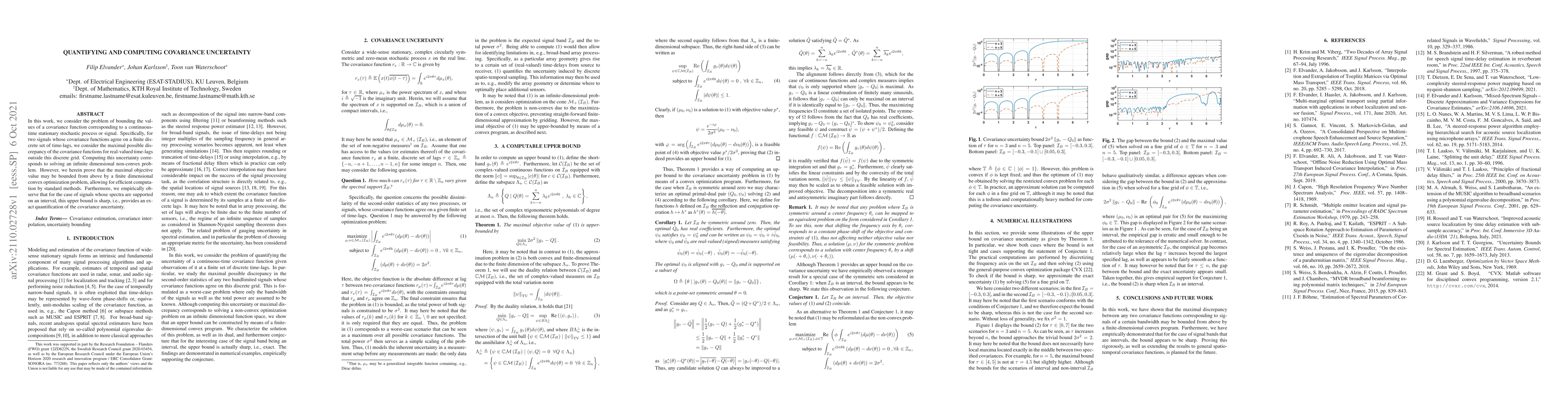 This paper addresses the challenge of determining the uncertainty in covariance functions for continuous-time stationary stochastic processes. It proposes a method to bound this uncertainty through a finite-dimensional convex optimization problem, which efficiently computes the maximal discrepancy of covariance functions outside a given discrete set of time-lags, and empirically shows that this upper bound is exact for signals with spectra supported on an interval.