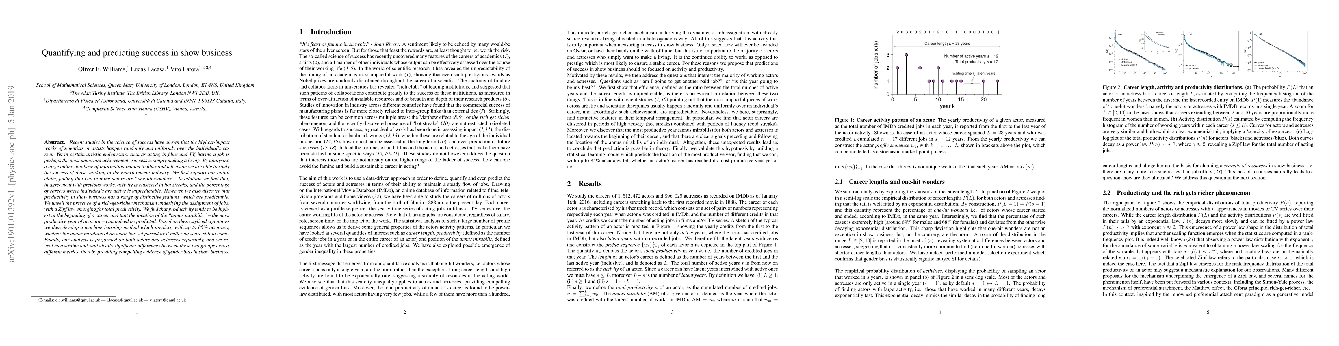 A study analyzes a large database of actors in film and TV to show that success is often clustered in 'hot streaks' but can also be predicted through productivity patterns, including a 'rich-get-richer' mechanism and an 'annus mirabilis' year of peak performance.