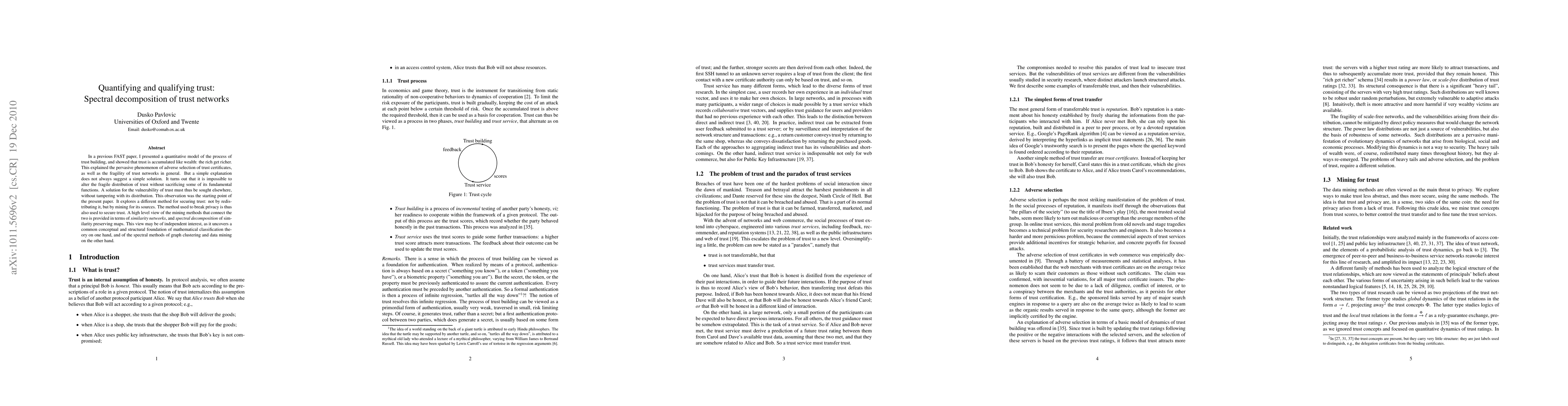 In a previous FAST paper, I presented a quantitative model of the process of trust building, and showed that trust is accumulated like wealth: the rich get richer. This explained the pervasive phenomenon of adverse selection of trust certificates, as well as the fragility of trust networks in general. But a simple explanation does not always suggest a simple solution. It turns out that it is impossible to alter the fragile distribution of trust without sacrificing some of its fundamental functions. A solution for the vulnerability of trust must thus be sought elsewhere, without tampering with its distribution. This observation was the starting point of the present paper. It explores a different method for securing trust: not by redistributing it, but by mining for its sources. The method used to break privacy is thus also used to secure trust. A high level view of the mining methods that connect the two is provided in terms of *similarity networks*, and *spectral decomposition* of similarity preserving maps. This view may be of independent interest, as it uncovers a common conceptual and structural foundation of mathematical classification theory on one hand, and of the spectral methods of graph clustering and data mining on the other hand.