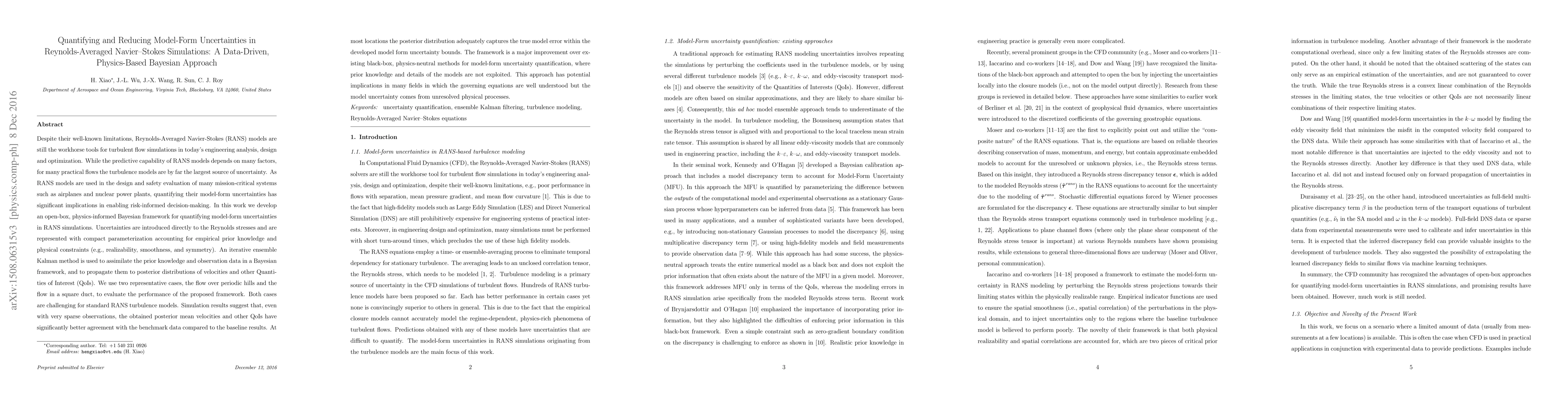 This paper proposes a data-driven, physics-informed Bayesian framework to quantify model-form uncertainties in Reynolds-Averaged Navier-Stokes (RANS) simulations, significantly improving upon existing methods by incorporating empirical prior knowledge and physical constraints. The framework shows better agreement with benchmark data in two test cases, indicating its potential for reducing uncertainties in turbulent flow simulations.