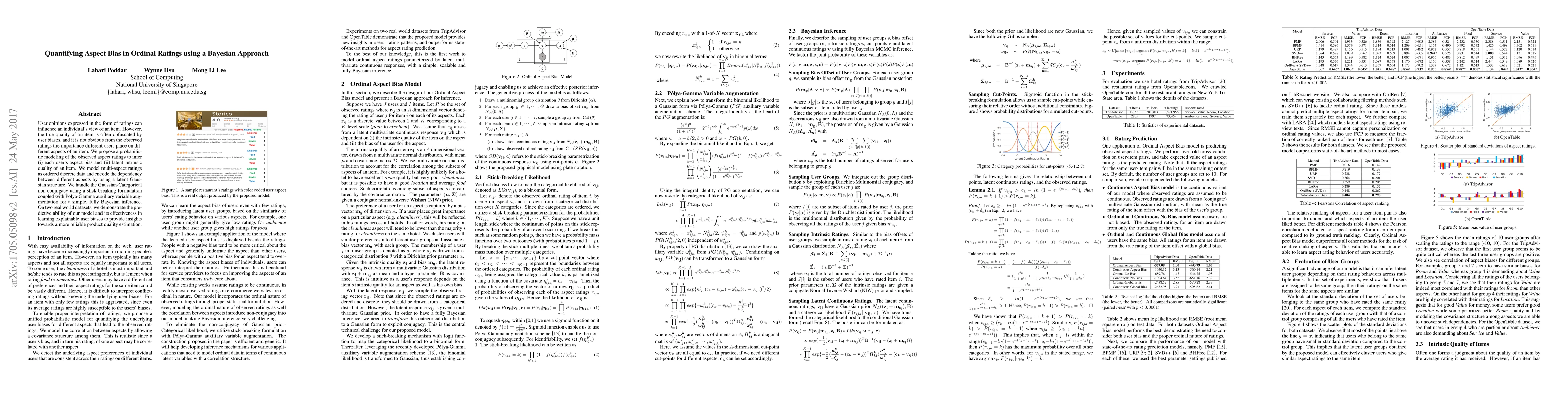 This paper proposes a Bayesian approach to quantify aspect bias in ordinal ratings, allowing for more accurate product quality estimation. It demonstrates predictive ability and learnability of explainable user biases on real-world datasets.