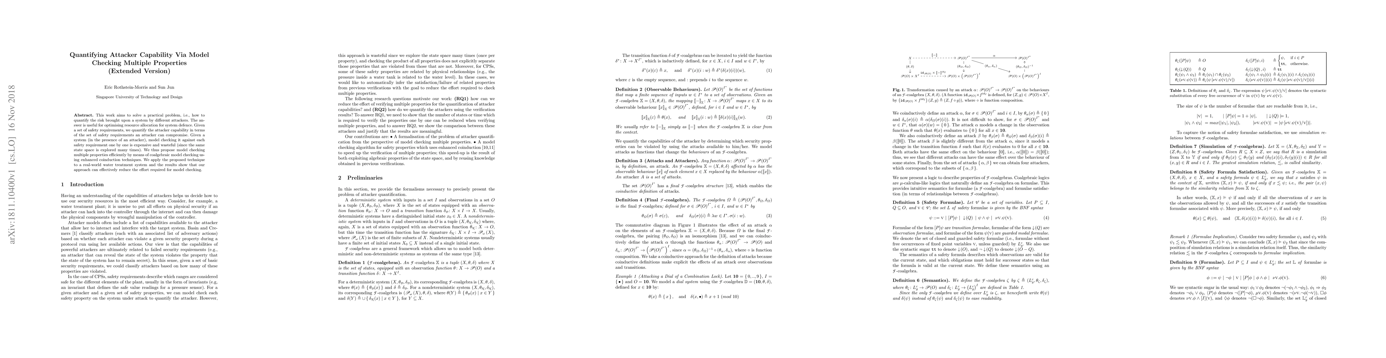 This paper proposes a method using coalgebraic model checking and enhanced coinduction to efficiently quantify attacker capability by checking multiple safety requirements simultaneously, thereby optimizing resource allocation for system defense. The approach is demonstrated on a real-world water treatment system, showing significant reduction in model checking effort.