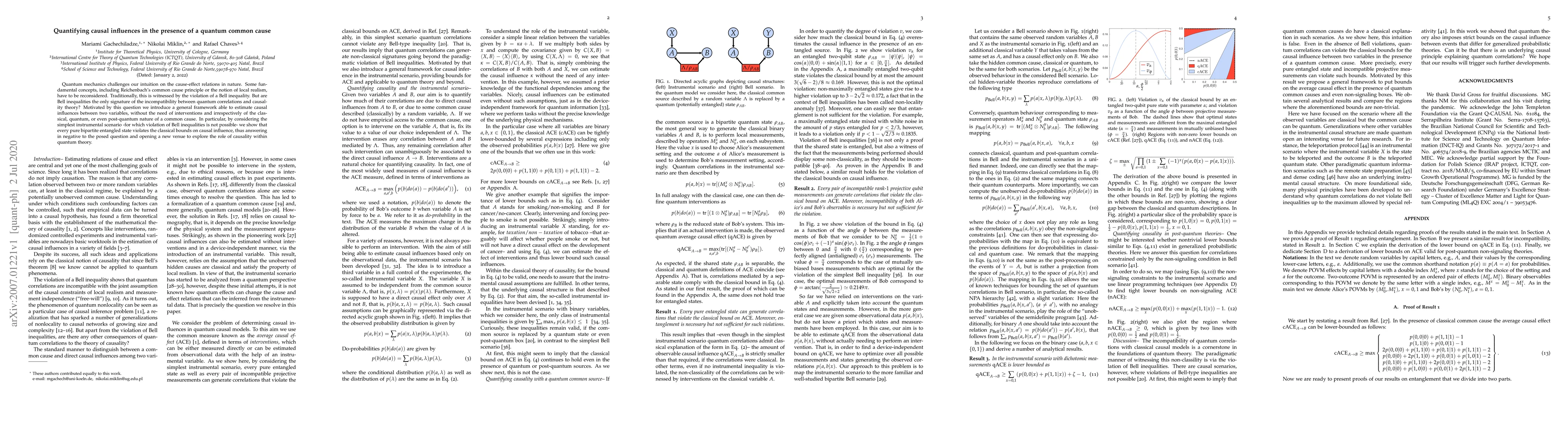 Quantum mechanics challenges our intuition on the cause-effect relations in nature. Some fundamental concepts, including Reichenbach's common cause principle or the notion of local realism, have to be reconsidered. Traditionally, this is witnessed by the violation of a Bell inequality. But are Bell inequalities the only signature of the incompatibility between quantum correlations and causality theory? Motivated by this question we introduce a general framework able to estimate causal influences between two variables, without the need of interventions and irrespectively of the classical, quantum, or even post-quantum nature of a common cause. In particular, by considering the simplest instrumental scenario -- for which violation of Bell inequalities is not possible -- we show that every pure bipartite entangled state violates the classical bounds on causal influence, thus answering in negative to the posed question and opening a new venue to explore the role of causality within quantum theory.