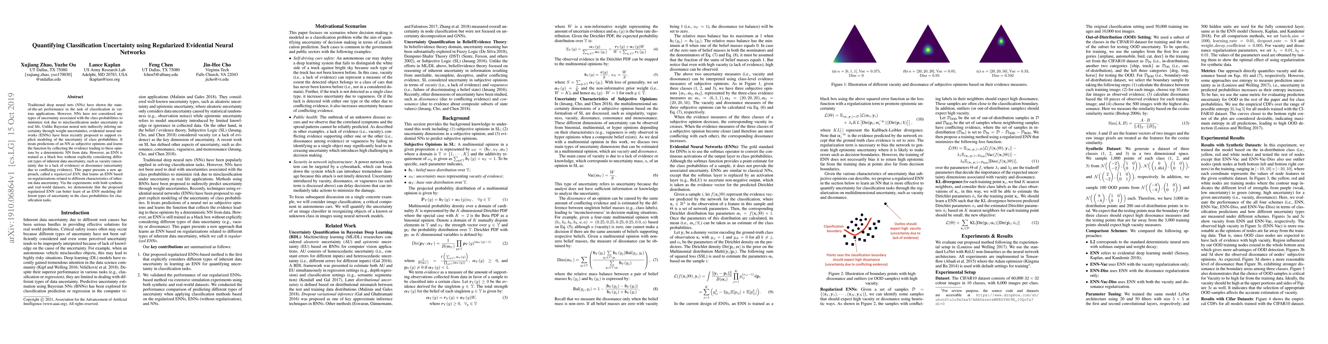 This paper introduces a regularized evidential neural network (ENN) to explicitly model classification uncertainty, addressing issues like vacuity and dissonance. Unlike traditional ENNs, the proposed method incorporates regularizations to better handle inherent data uncertainties, demonstrating improved performance in classification tasks.