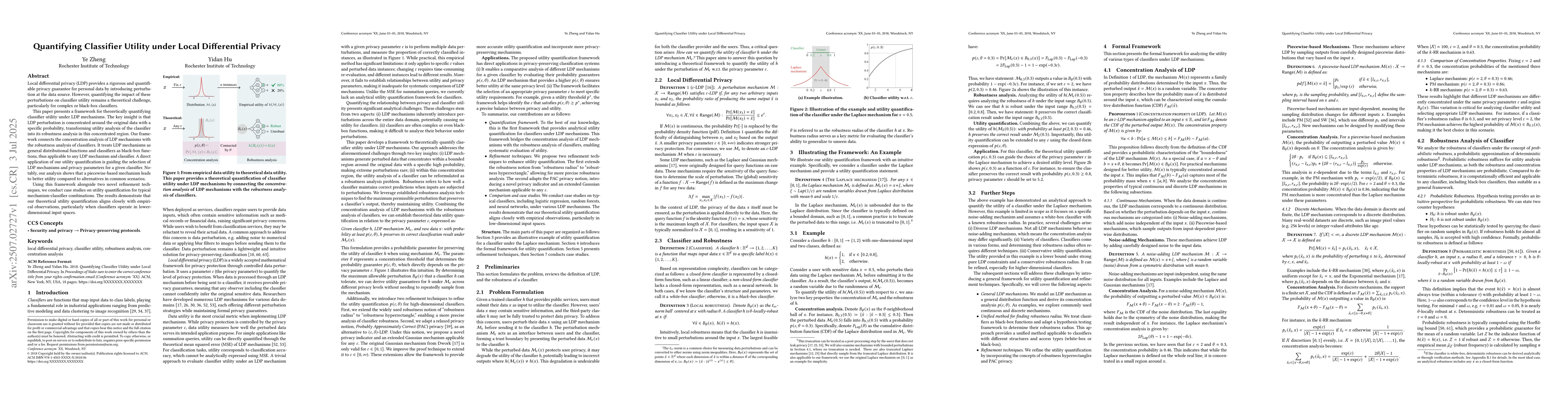Local differential privacy (LDP) provides a rigorous and quantifiable privacy guarantee for personal data by introducing perturbation at the data source. However, quantifying the impact of these perturbations on classifier utility remains a theoretical challenge, particularly for complex or black-box classifiers. This paper presents a framework for theoretically quantifying classifier utility under LDP mechanisms. The key insight is that LDP perturbation is concentrated around the original data with a specific probability, transforming utility analysis of the classifier into its robustness analysis in this concentrated region. Our framework connects the concentration analysis of LDP mechanisms with the robustness analysis of classifiers. It treats LDP mechanisms as general distributional functions and classifiers as black-box functions, thus applicable to any LDP mechanism and classifier. A direct application of our utility quantification is guiding the selection of LDP mechanisms and privacy parameters for a given classifier. Notably, our analysis shows that a piecewise-based mechanism leads to better utility compared to alternatives in common scenarios. Using this framework alongside two novel refinement techniques, we conduct case studies on utility quantification for typical mechanism-classifier combinations. The results demonstrate that our theoretical utility quantification aligns closely with empirical observations, particularly when classifiers operate in lower-dimensional input spaces.