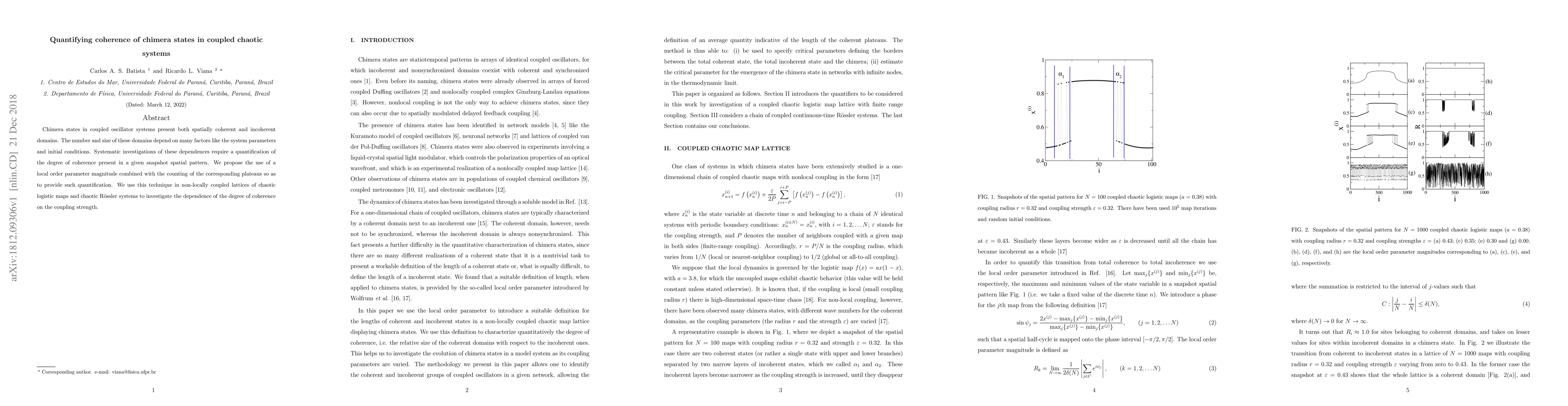 The research proposes a quantification of coherence in chimera states using a local order parameter magnitude combined with plateau counting in non-locally coupled lattices of chaotic logistic maps and Rössler systems.
