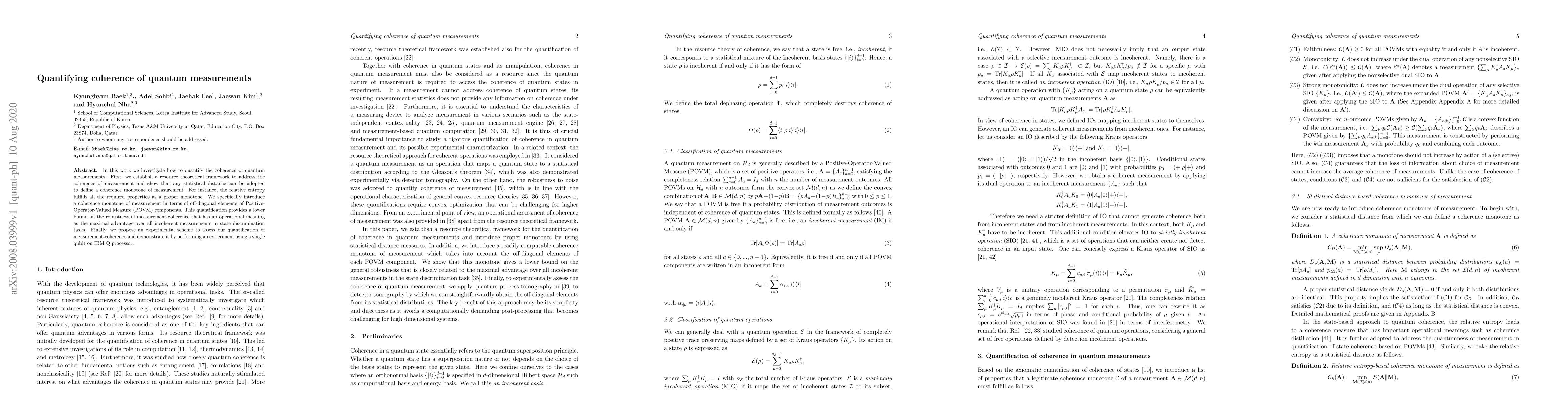 This paper develops a framework to quantify the coherence of quantum measurements, introducing a coherence monotone based on the off-diagonal elements of POVM components. It proposes an experimental scheme to assess this quantification and demonstrates its application using a single qubit on IBM Q processor.