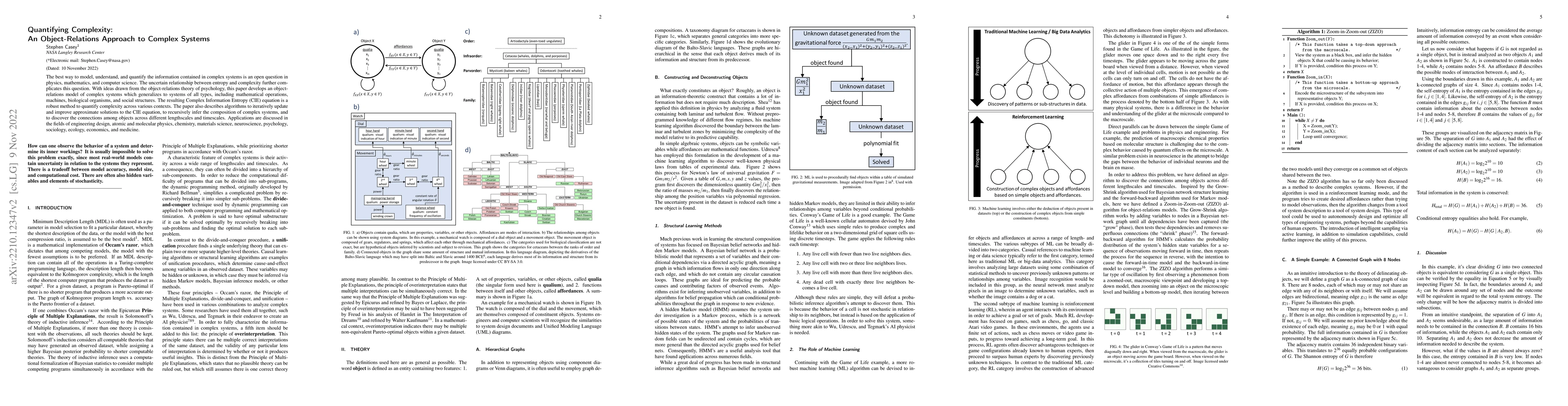 The best way to model, understand, and quantify the information contained in complex systems is an open question in physics, mathematics, and computer science. The uncertain relationship between entropy and complexity further complicates this question. With ideas drawn from the object-relations theory of psychology, this paper develops an object-relations model of complex systems which generalizes to systems of all types, including mathematical operations, machines, biological organisms, and social structures. The resulting Complex Information Entropy (CIE) equation is a robust method to quantify complexity across various contexts. The paper also describes algorithms to iteratively update and improve approximate solutions to the CIE equation, to recursively infer the composition of complex systems, and to discover the connections among objects across different lengthscales and timescales. Applications are discussed in the fields of engineering design, atomic and molecular physics, chemistry, materials science, neuroscience, psychology, sociology, ecology, economics, and medicine.