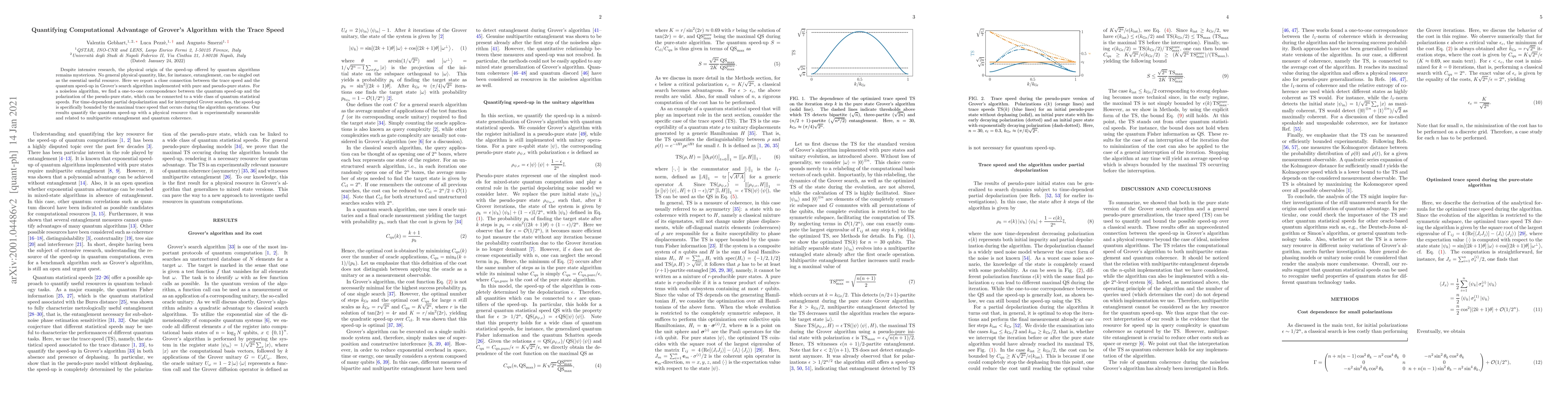 This paper establishes a direct link between Grover's algorithm speed-up and the trace speed, demonstrating that the quantum speed-up corresponds to the polarization of the pseudo-pure state. It also shows that the maximal trace speed during algorithm operations bounds the speed-up in scenarios with noise and interruptions.