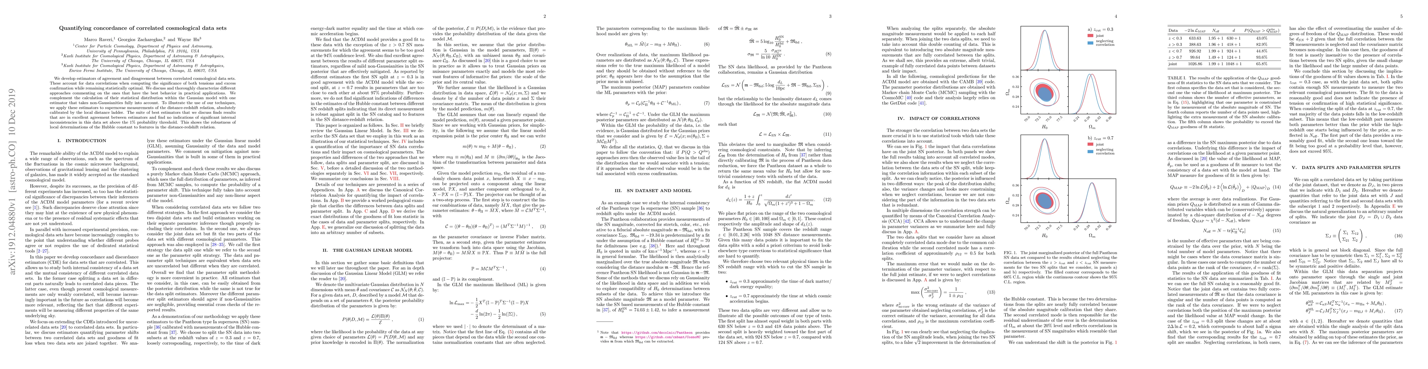 We develop estimators of agreement and disagreement between correlated cosmological data sets. These account for data correlations when computing the significance of both tensions and excess confirmation while remaining statistically optimal. We discuss and thoroughly characterize different approaches commenting on the ones that have the best behavior in practical applications. We complement the calculation of their statistical distribution within the Gaussian model with one estimator that takes non-Gaussianities fully into account. To illustrate the use of our techniques, we apply these estimators to supernovae measurements of the distance-redshift relation, absolutely calibrated by the local distance ladder. The suite of best estimators that we discuss finds results that are in excellent agreement between estimators and find no indications of significant internal inconsistencies in this data set above the $1\%$ probability threshold. This shows the robustness of local determinations of the Hubble constant to features in the distance-redshift relation.