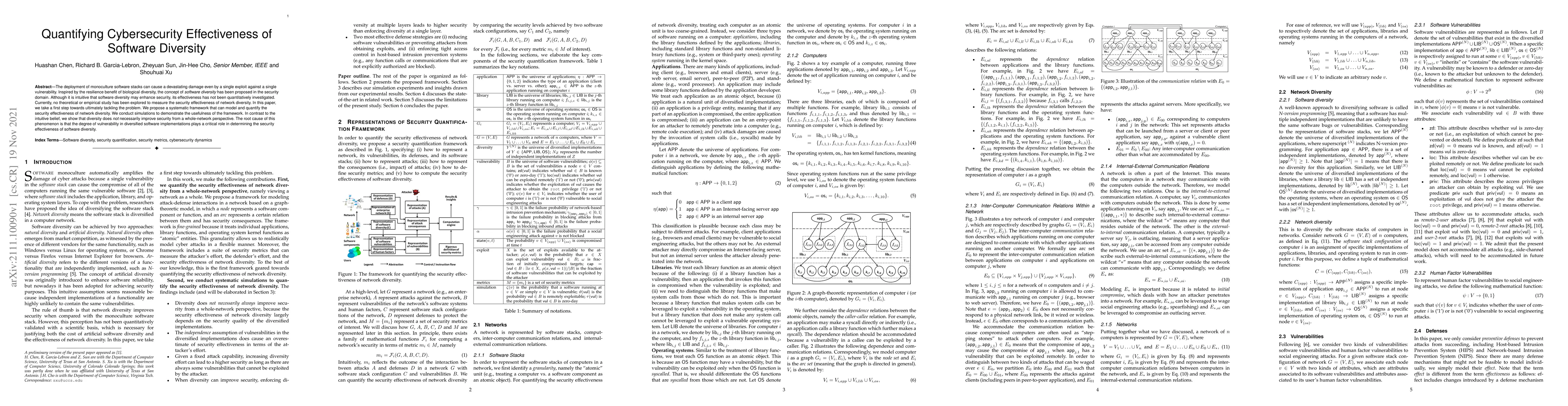 This paper proposes a framework to quantify the cybersecurity effectiveness of software diversity, finding that while diversity may enhance security, its benefits depend on the vulnerability levels of diverse software implementations rather than just the diversity itself. Simulations show that network diversity does not universally improve security.