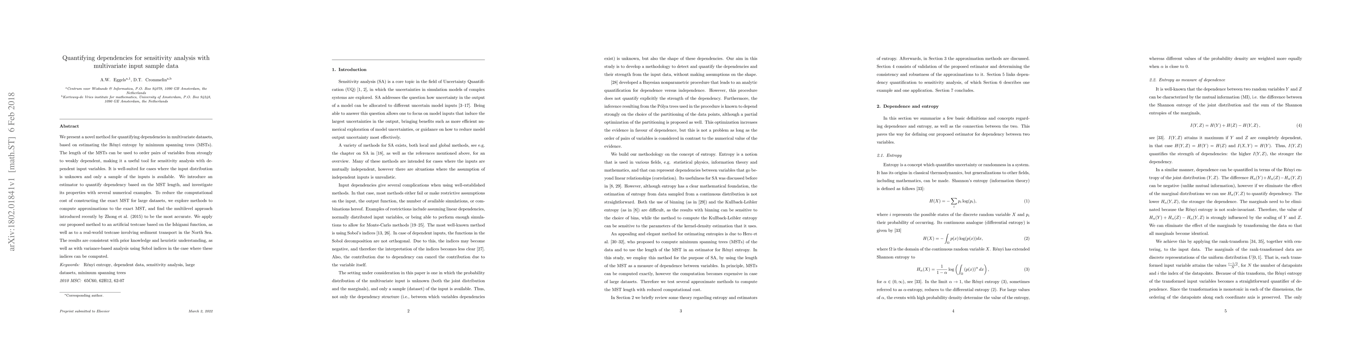 This paper introduces a novel method for quantifying dependencies in multivariate datasets using Rényi entropy estimated via minimum spanning trees (MSTs). The method orders variable pairs based on MST lengths, aiding sensitivity analysis, and is effective even when the input distribution is unknown.