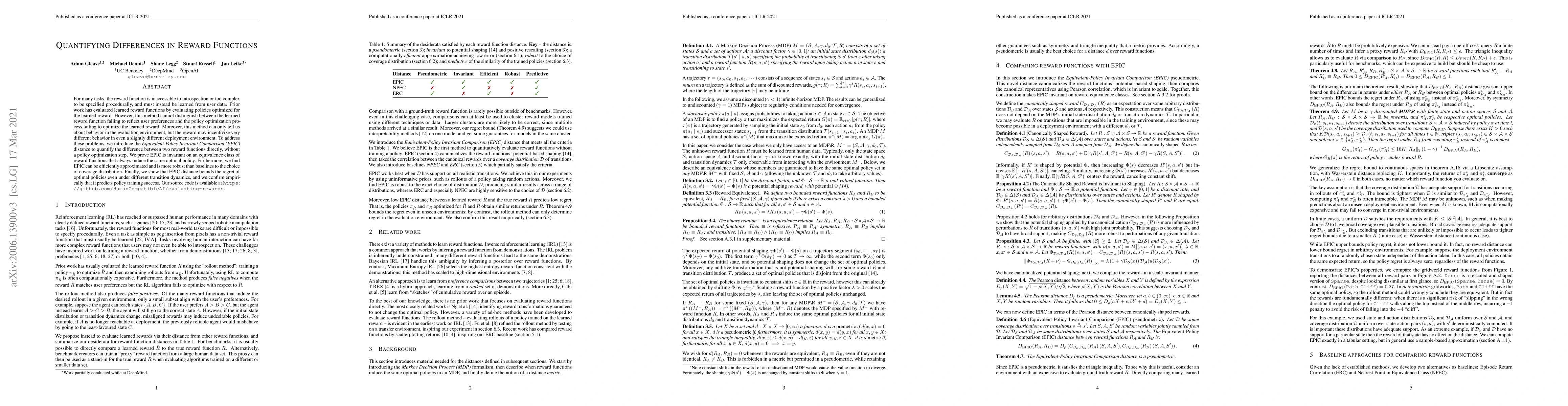 This paper introduces the EPIC distance to directly quantify differences between reward functions without policy optimization, addressing limitations of prior methods. EPIC is shown to be invariant under equivalent policies and robust to coverage distribution, effectively bounding regret across different environments.