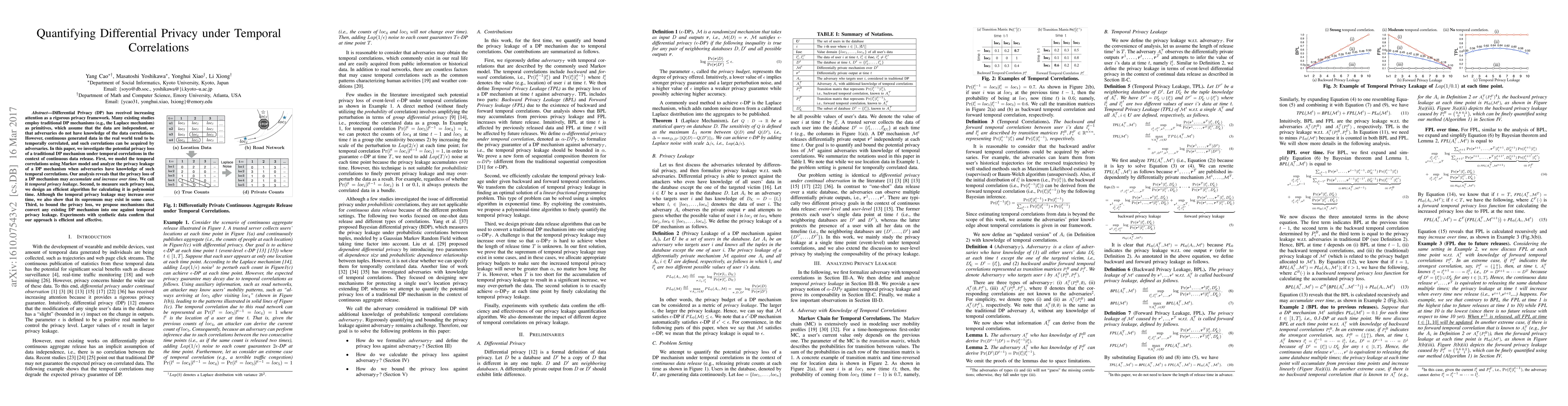 This paper investigates how temporal correlations in continuous data can lead to increased privacy loss under traditional Differential Privacy mechanisms, proposing new methods to mitigate this issue.