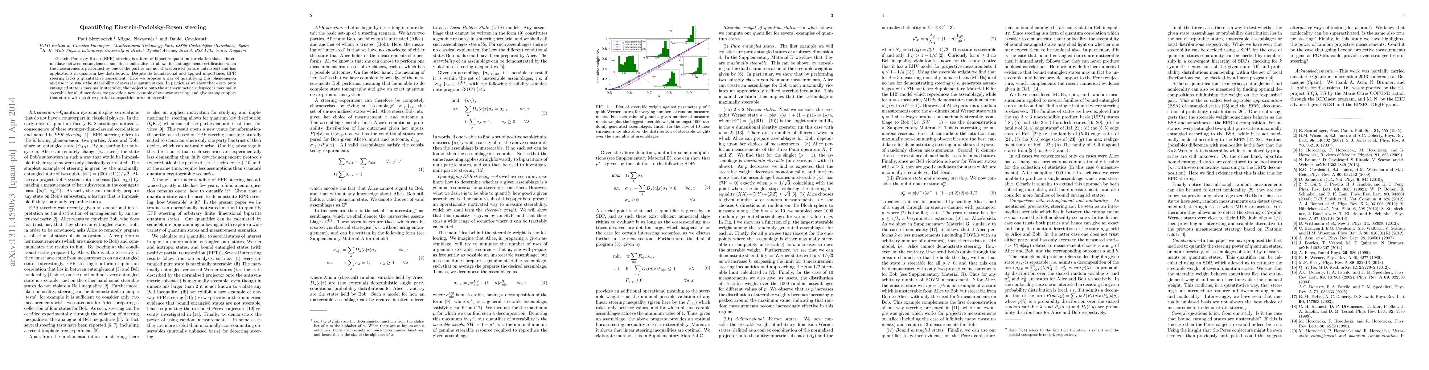 This paper proposes a quantitative measure for Einstein-Podolsky-Rosen (EPR) steering, a form of quantum correlation between bipartite systems. The authors demonstrate that pure entangled states are maximally steerable and provide new insights into the steerability of various quantum states, including non-steerability of positive-partial-transposition states.