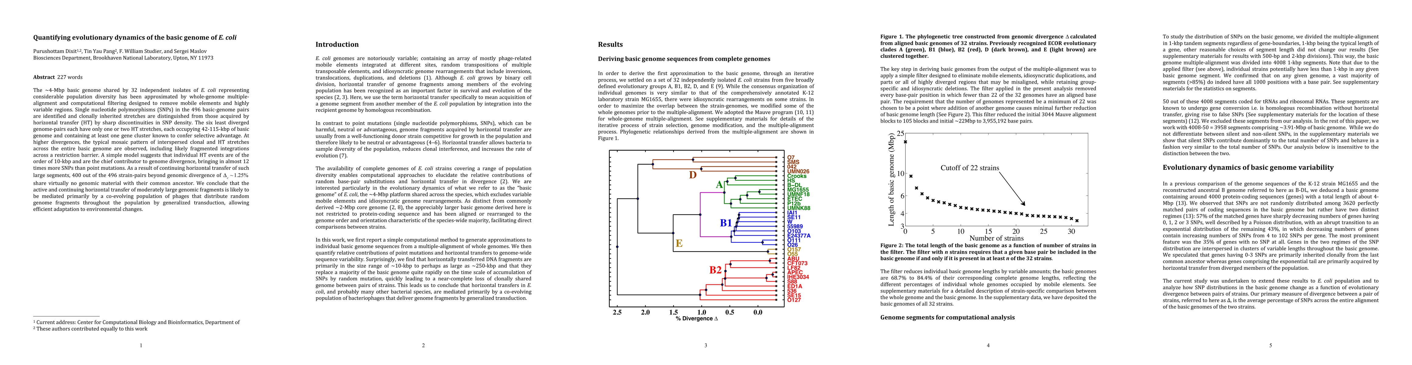 Researchers studied the basic genome of E. coli and found that horizontal transfer of large genomic fragments, mediated by phages, contributes significantly to genome divergence. This process allows bacteria to adapt to environmental changes.