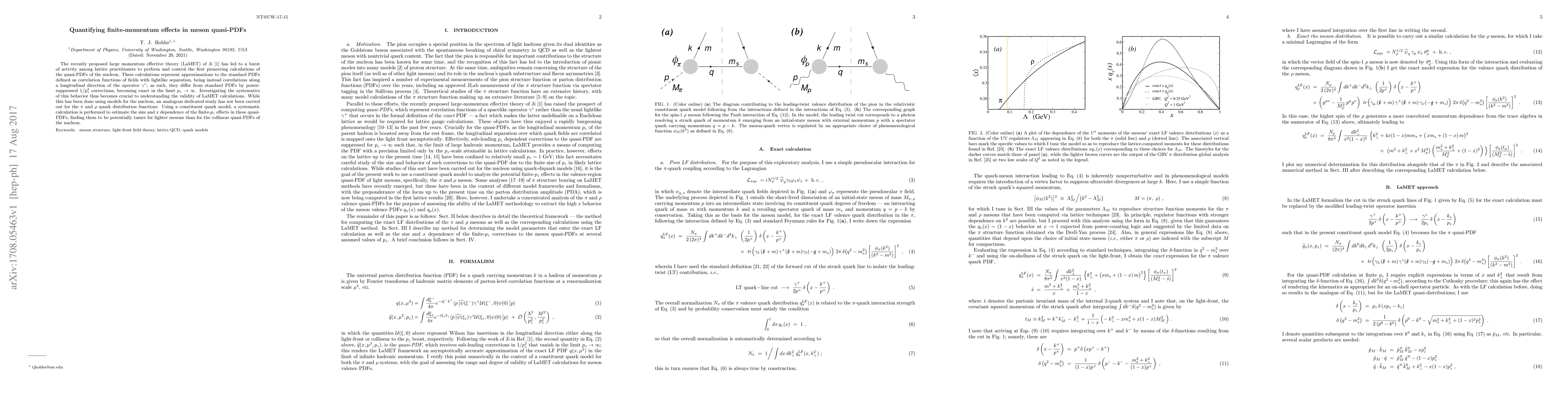 This paper investigates finite-momentum effects in the quasi-PDFs of pions and rho mesons using a constituent quark model, finding that these effects are relatively smaller compared to those in the nucleon's quasi-PDFs. This study supports the validity of the LaMET framework for lighter mesons.