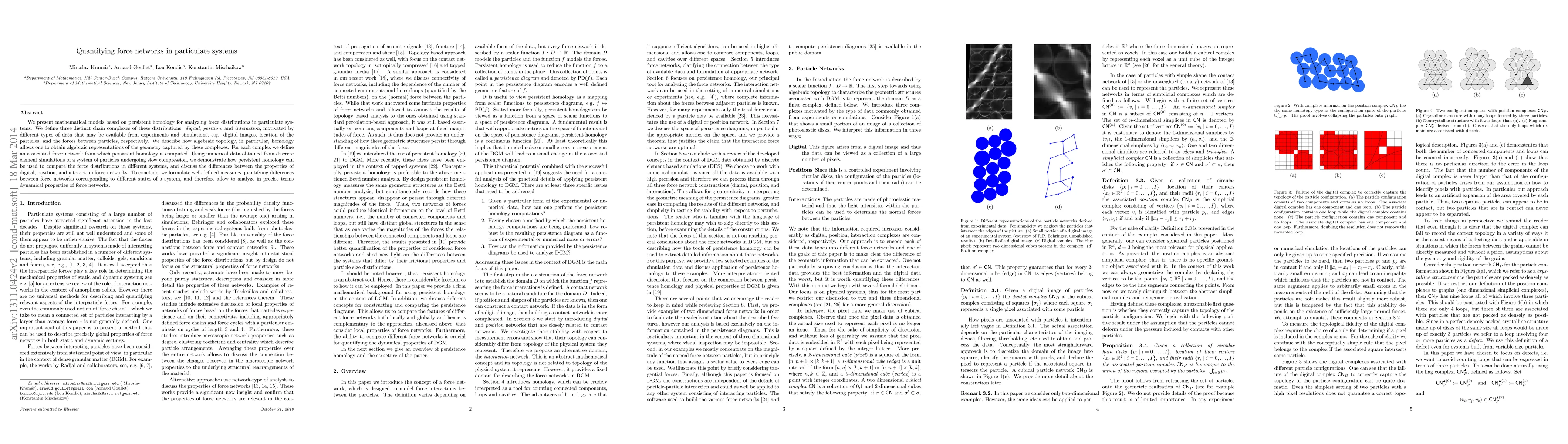 Researchers developed mathematical models to analyze force distributions in particulate systems using persistent homology, a technique that captures the geometry of complex systems. By comparing force networks from molecular dynamics simulations, they demonstrated how persistent homology can be used to compare geometries of different granular systems.