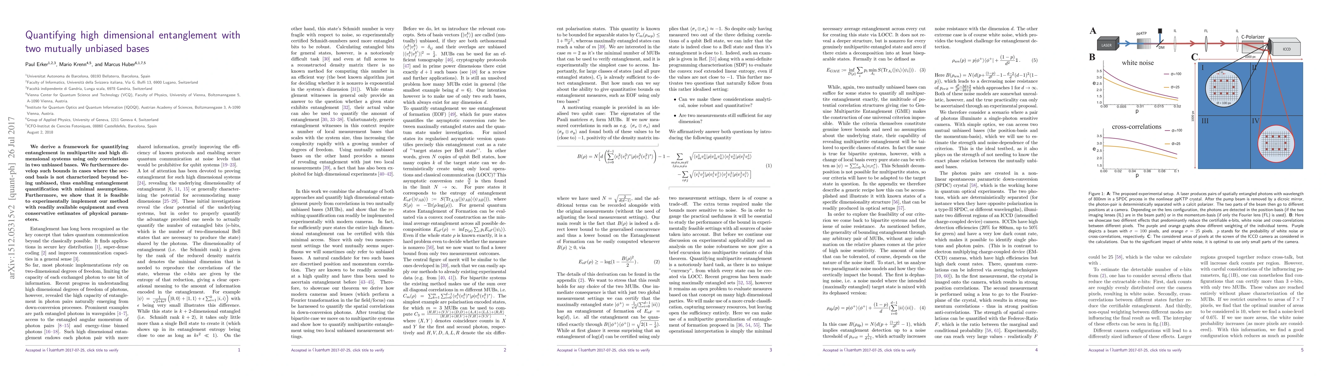 Researchers developed a method to quantify entanglement in high-dimensional systems using correlations in two unbiased bases, enabling minimal assumptions and feasible experimental implementation.